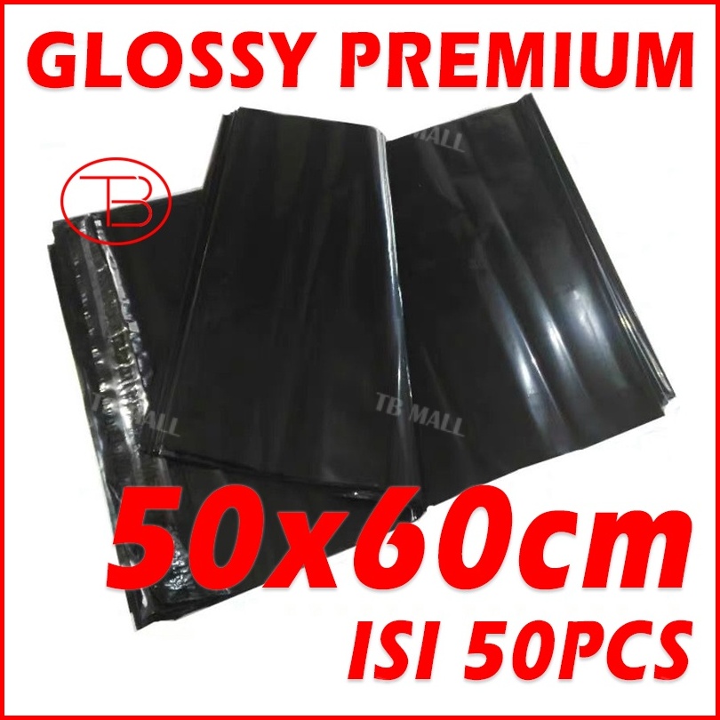 Fumu Plastik Packing 50x60cm Polymailer Olshop Ldpe Hitam B Isi 50pcs 50micron Lem Perekat Kuat