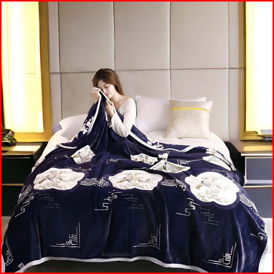 Selimut Dewasa Bulu Halus Jumbo 200x230 Motif Keren List Super Tebal Berkualitas Tinggi