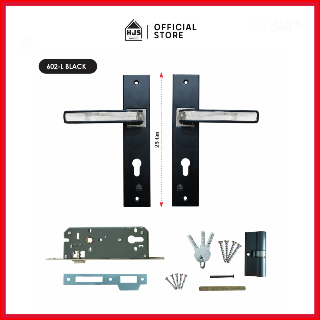 Handle Set Pintu Besar Large 25cm Handle Pintu Kotak 602-l 601-l Handle Pintu Hitam Minimalis Gagang Pintu Rumah Minimal