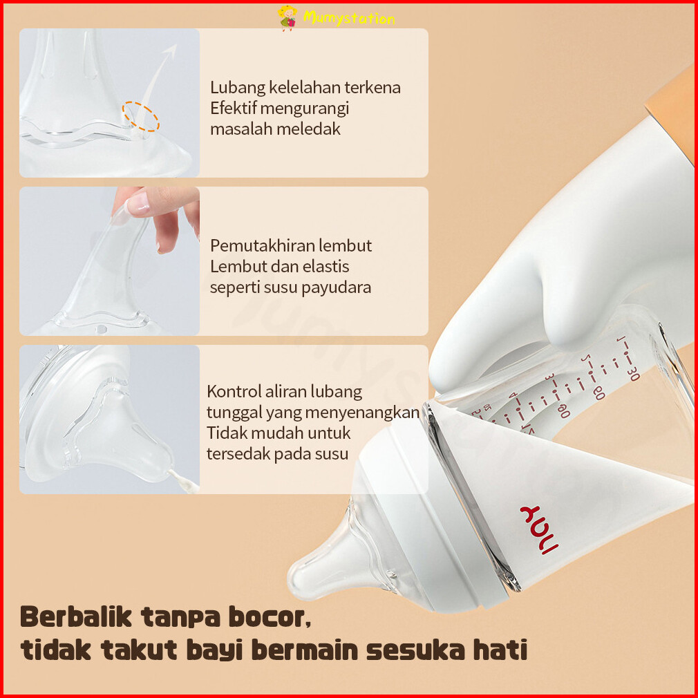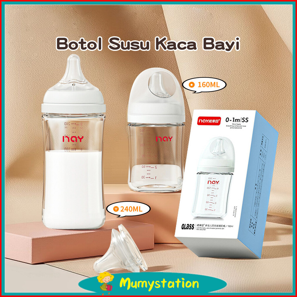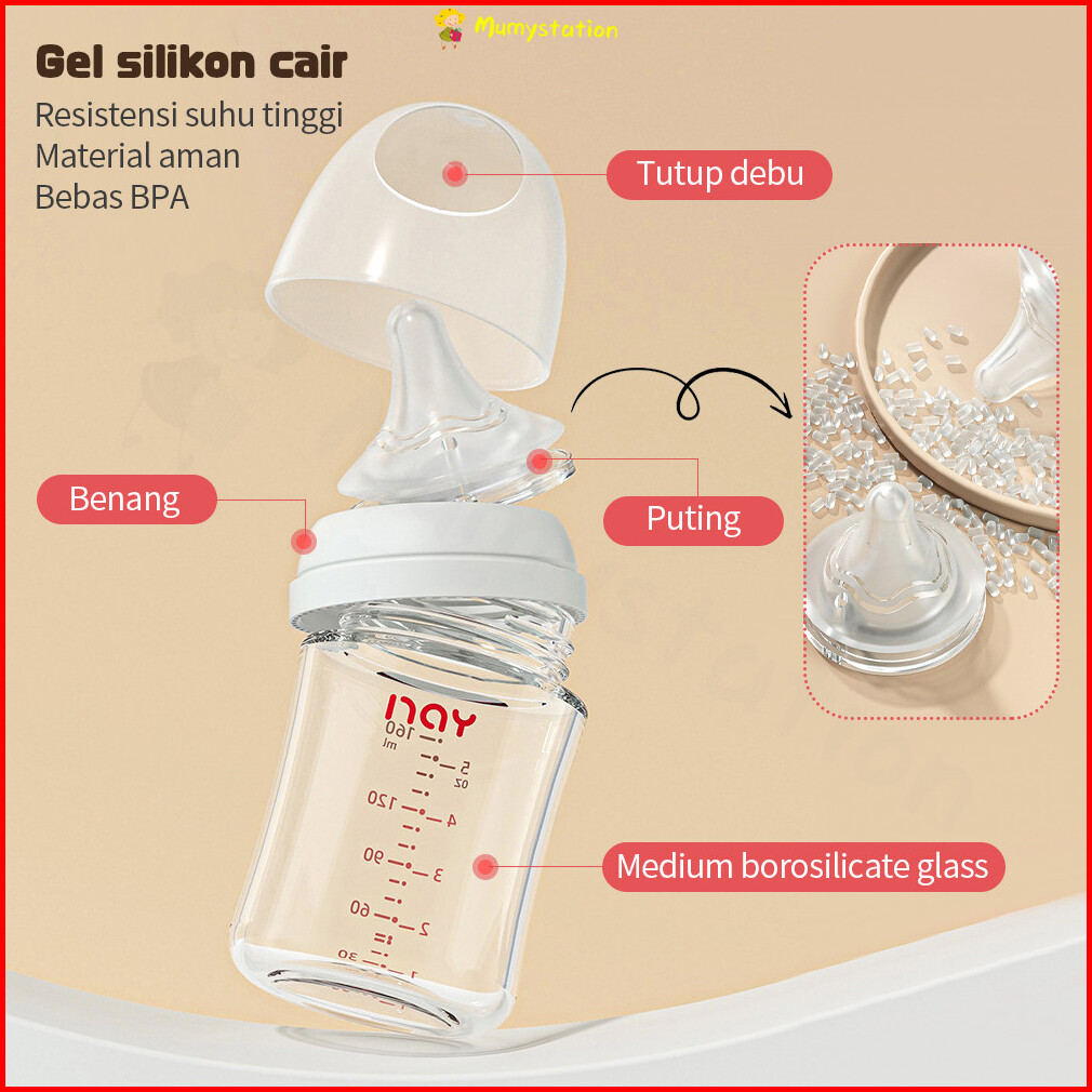 Mumystation Botol Susu Kaca Untuk Bayi Baru Lahir Seri 160ml 240ml Botol Minum Bayi Dengan Puting Antikolik