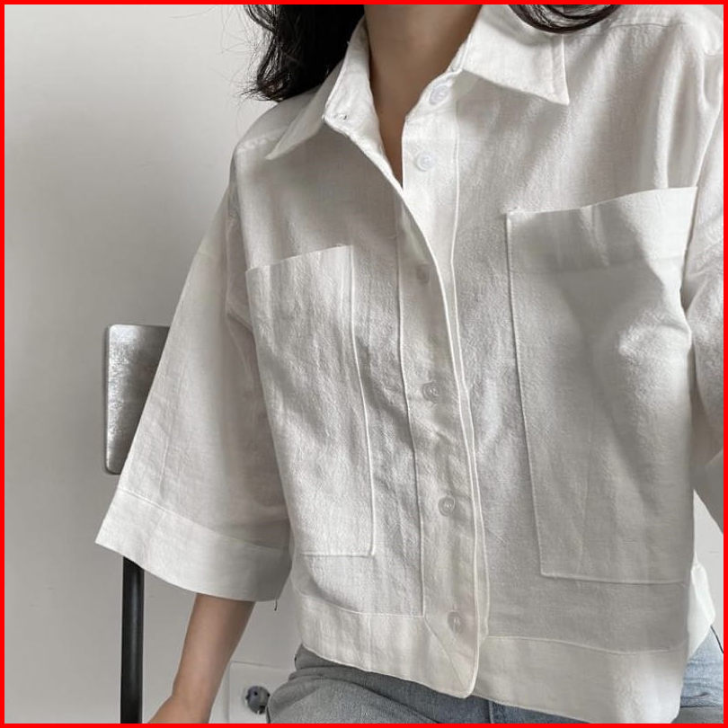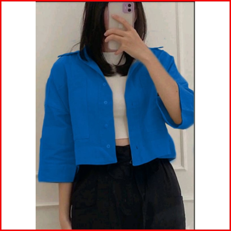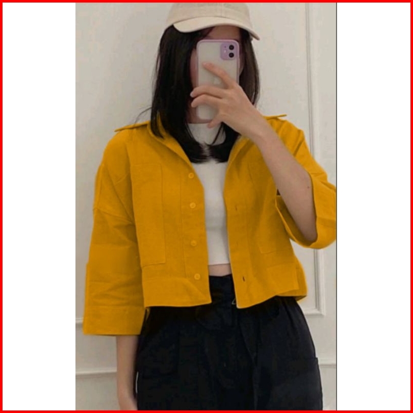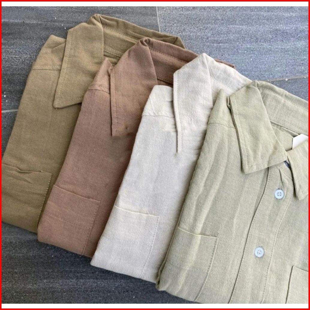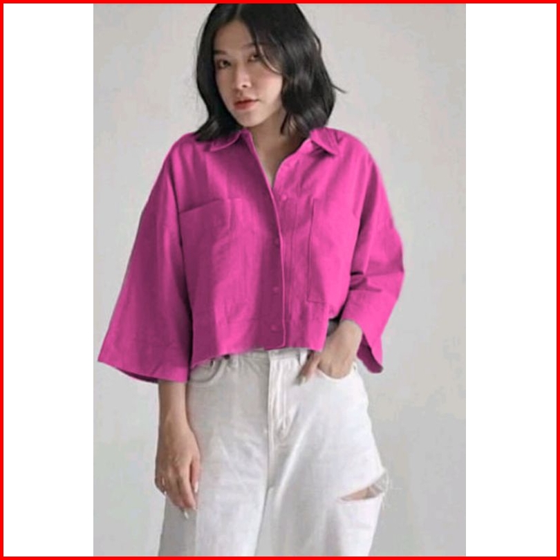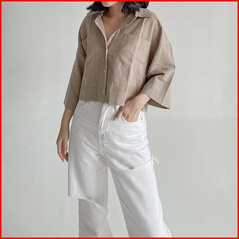 Outer Linen Kemeja Crop Outer Korea Kemeja Wanita
