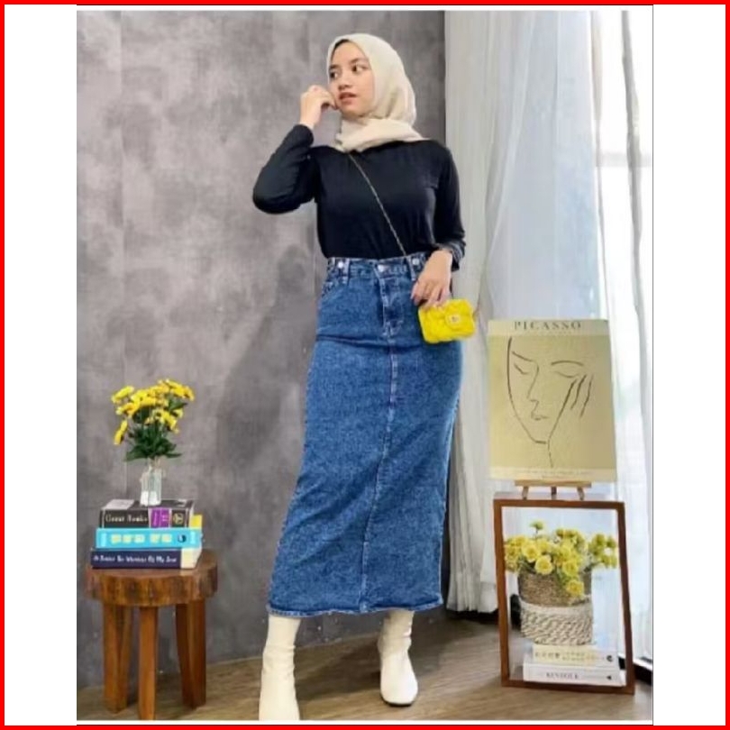 Rok Jeans Panjang Rok Theana Jeans Rok Kantor Jeans