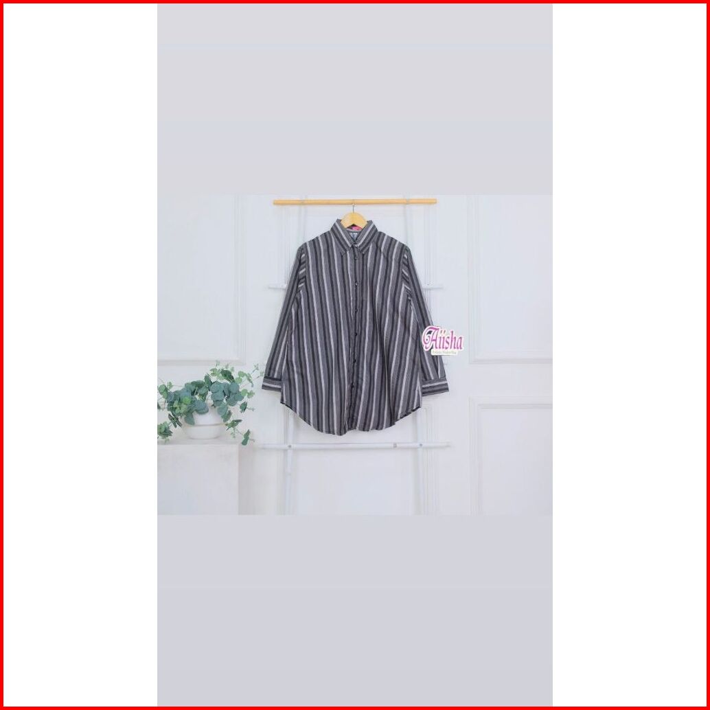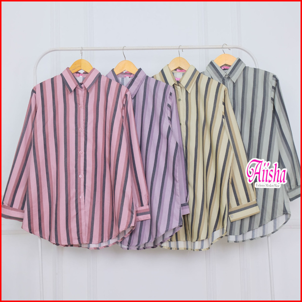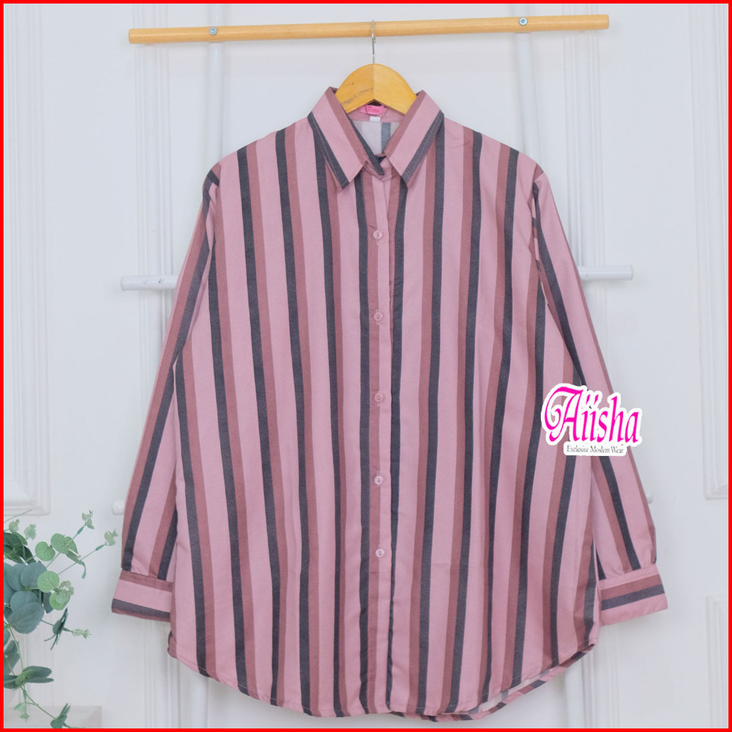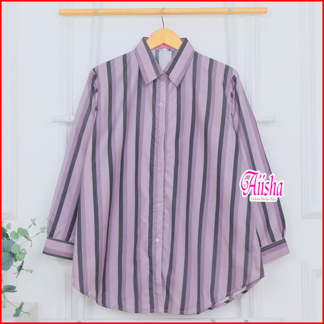 Aiisha Kemeja Salur Faziera Dan Safiera Ld 110 - 140 Bahan Cotton Miracle Kemeja Jumbo Strippy