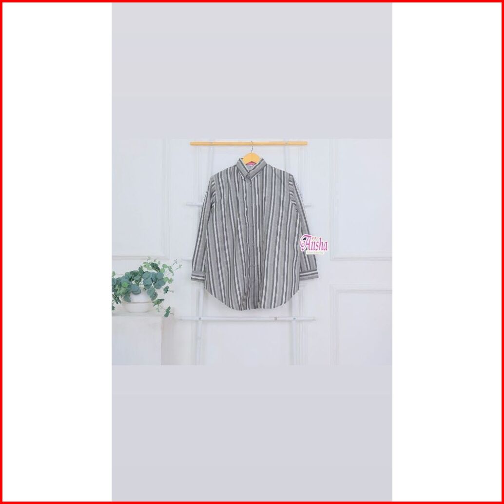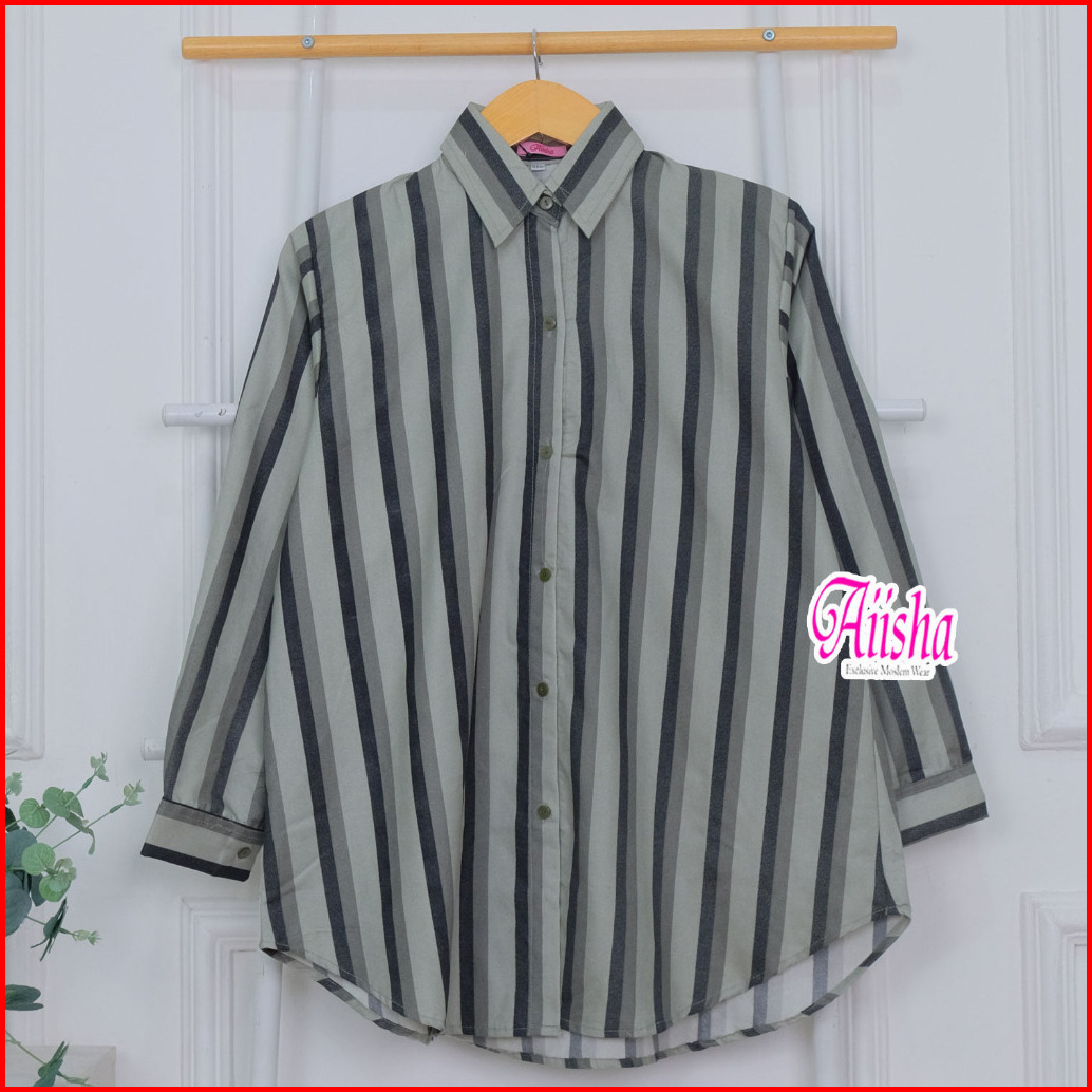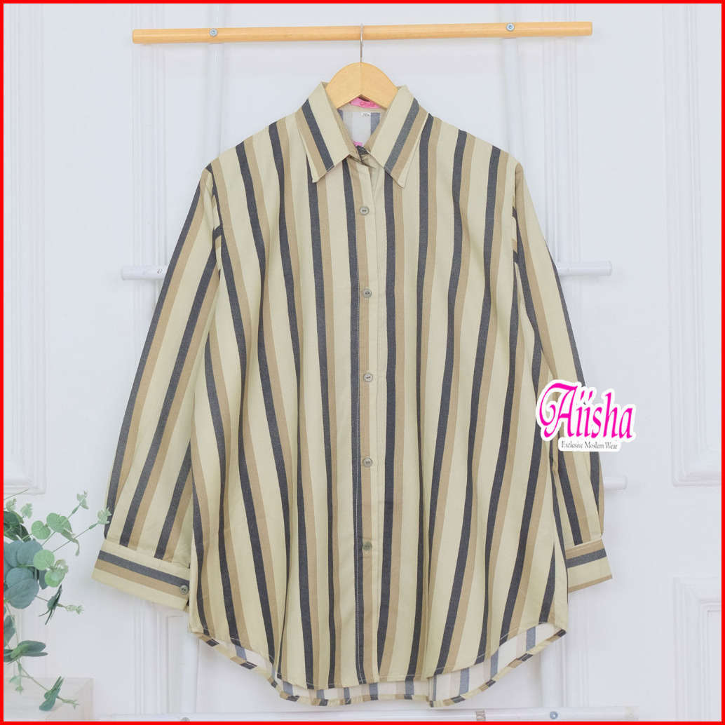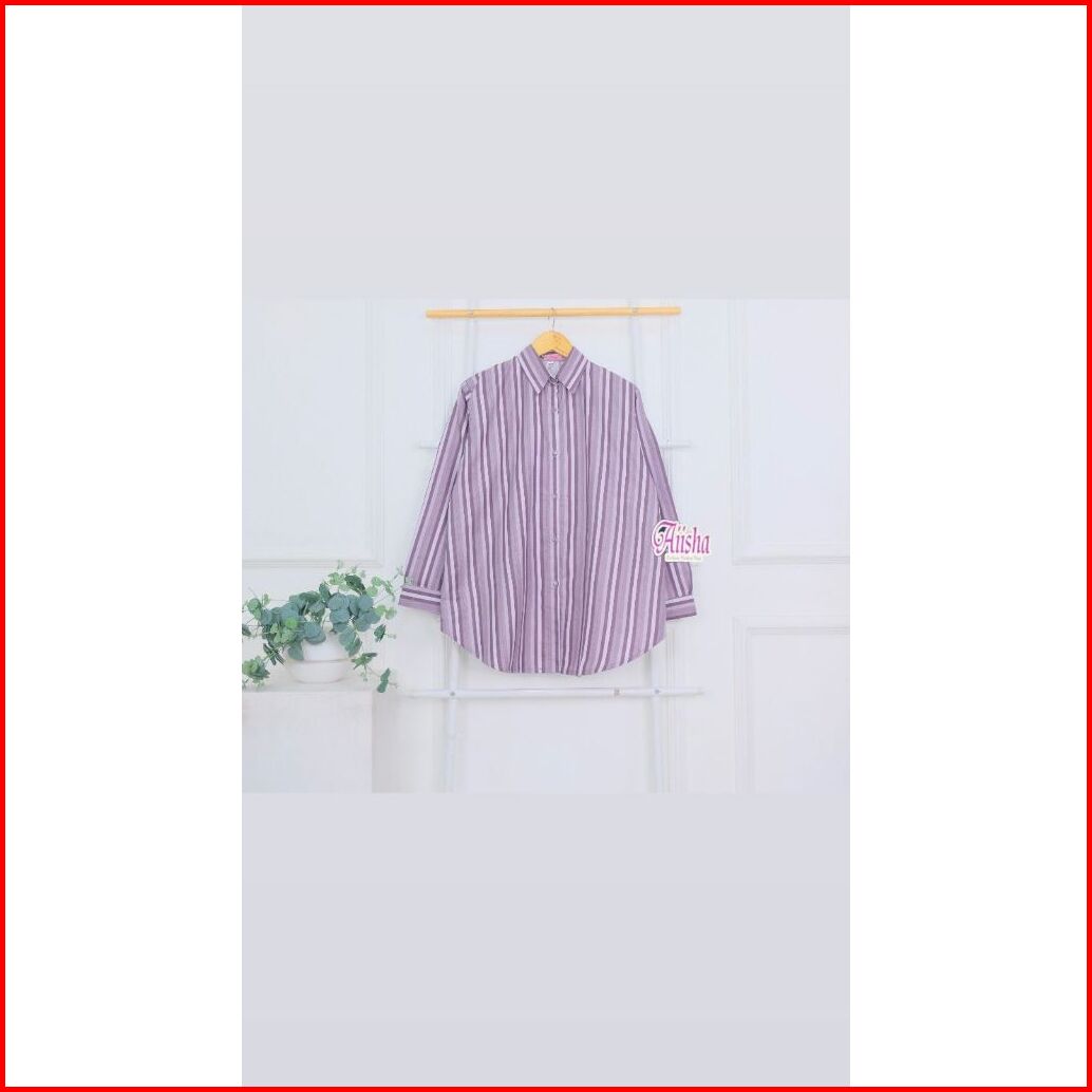 Aiisha Kemeja Salur Faziera Dan Safiera Ld 110 - 140 Bahan Cotton Miracle Kemeja Jumbo Strippy