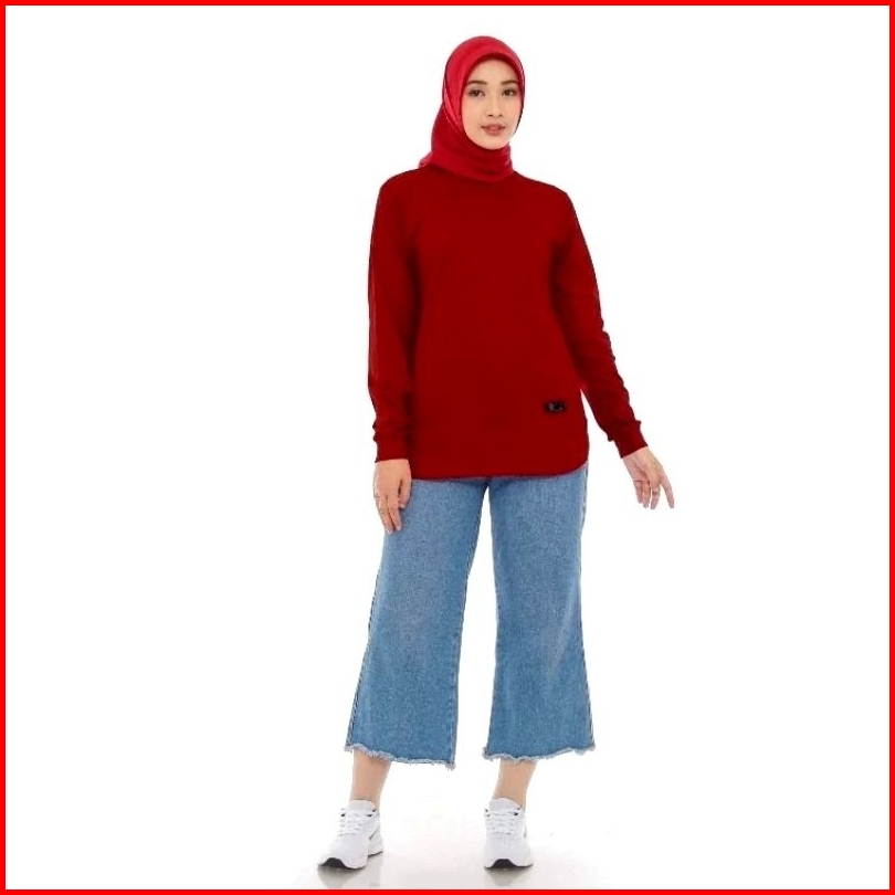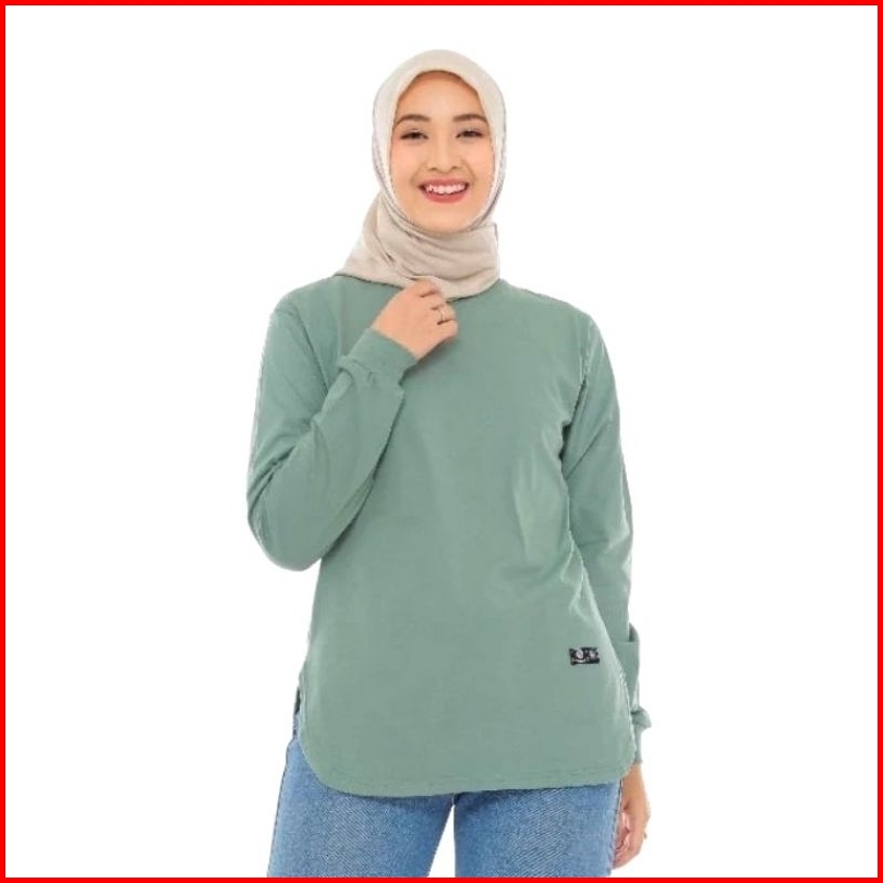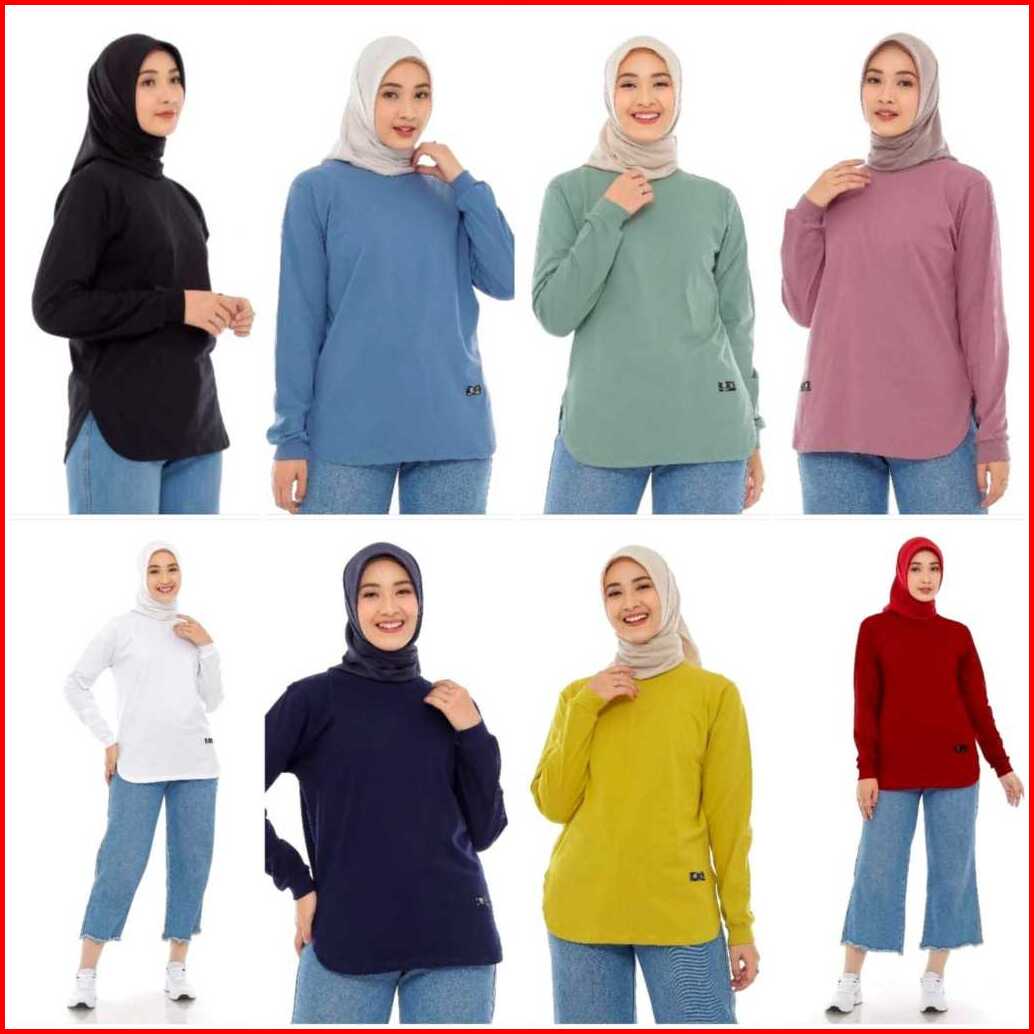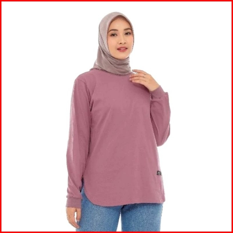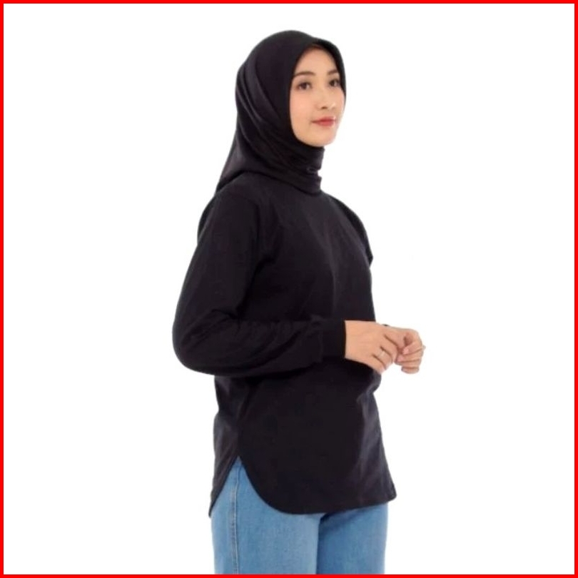 Kaos Atasan Wanita Oversize Body Oval Lengan Panjang Muslimah Cotton Combed 24s Premium