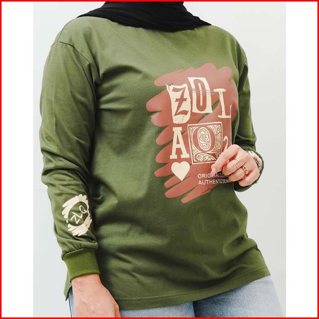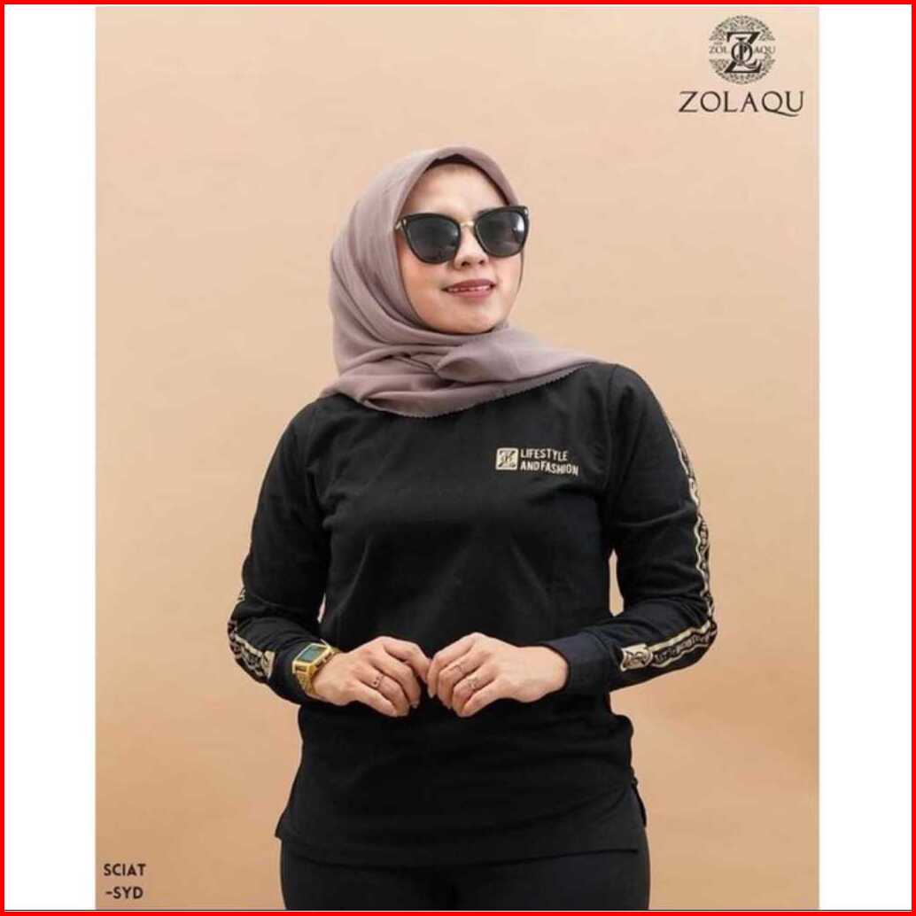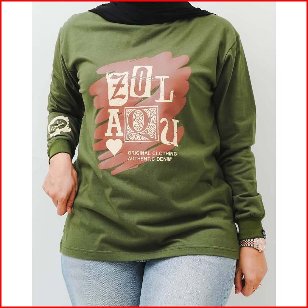Kaos Wanita Zolaqu Original Lengan Panjang Cotton Combed 24s Terlaris Full Size Bisa Seragam