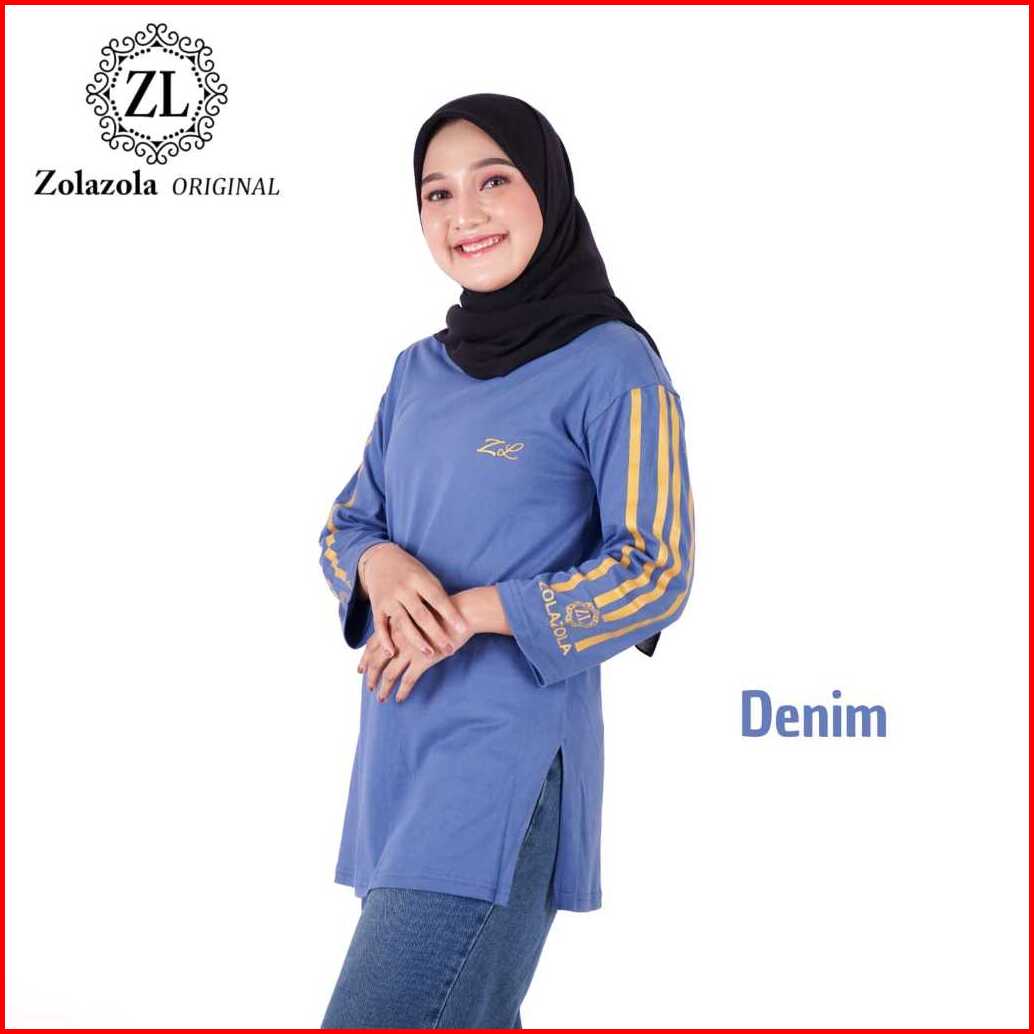 Kaos Atasan Wanita Lengan 7 8 Top Basic Strip Cotton Combed 24s Premium Full Size M-l-xl-xxl-xxxl