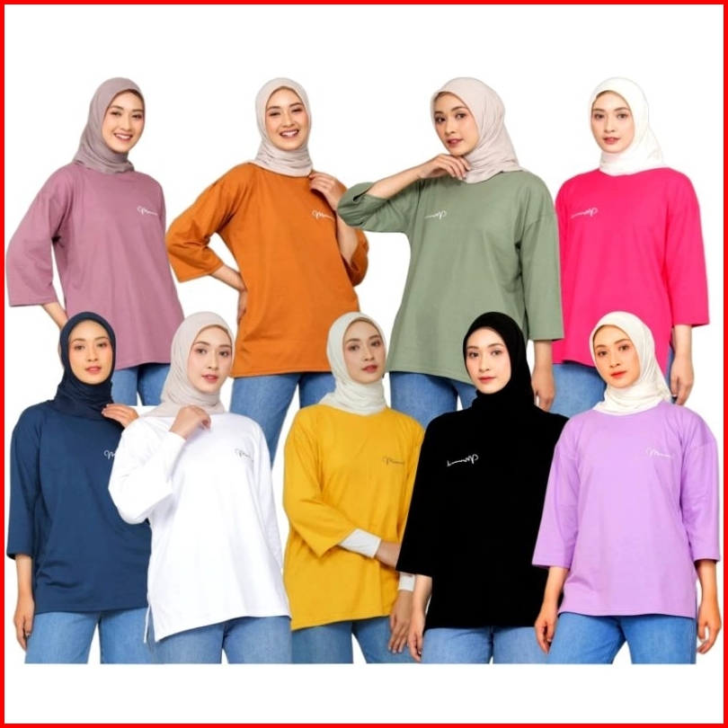 Kaos Atasan Oversize Wanita Lengan 7 8 Top Basic Polos Full Size Cotton Combed 24s Terlaris