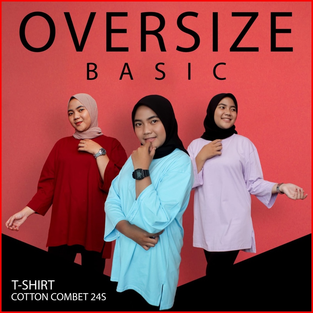 Kaos Polos Oversize Hijab Lengan 7 8 Cotton Combed Premium 24s