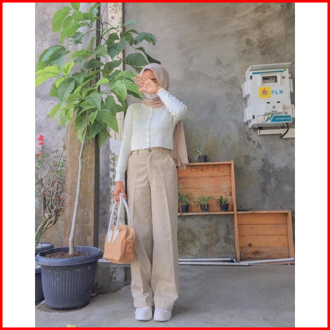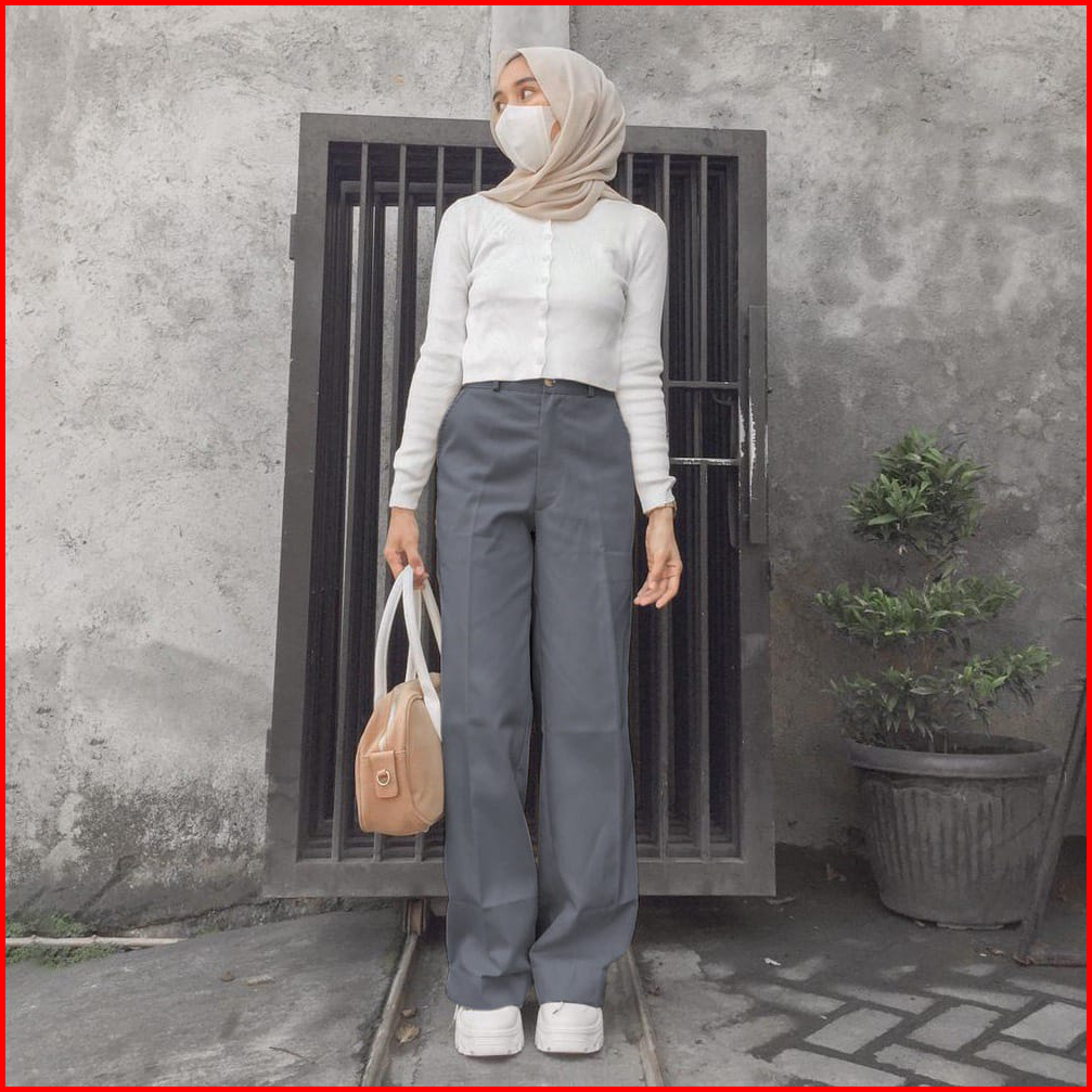 Melva Slit Pants Kulot Highwaist Celana Loose Pants Trousers Wanita