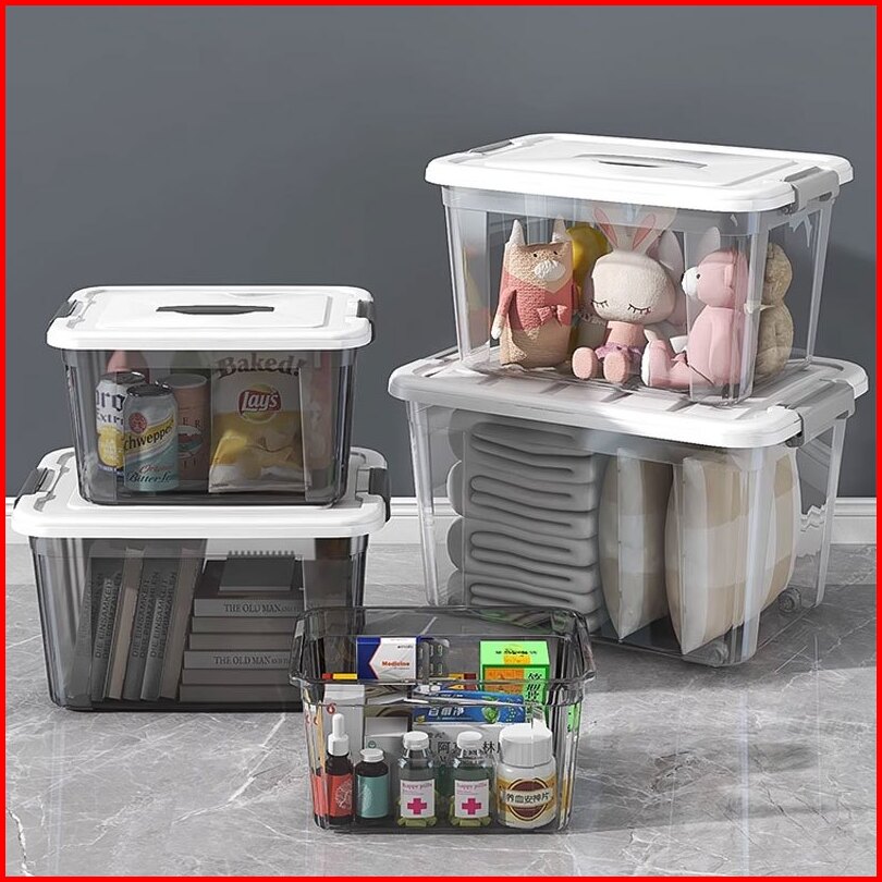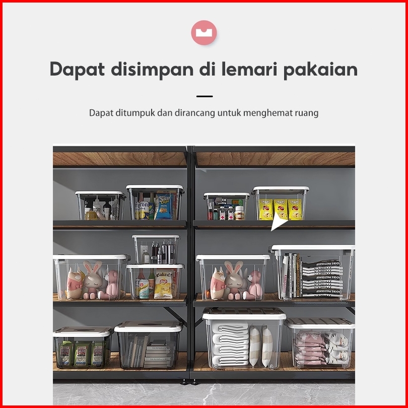 Box Container Transparan Baju Mainan Storage Box Kotak Penyimpanan Kontainer Box Plastik Organizer Serbaguna Dengan Tutu