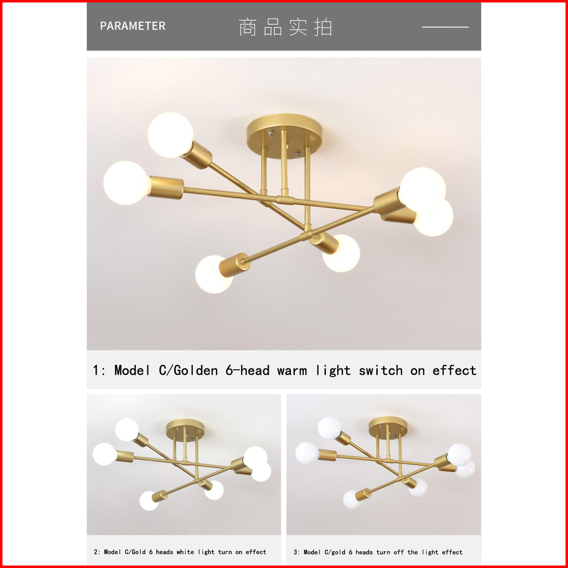 Taffled Lampu Plafon Modern Nordic Bisa Ganti Bohlam E27 Material Besi Model 6 Bohlam Light