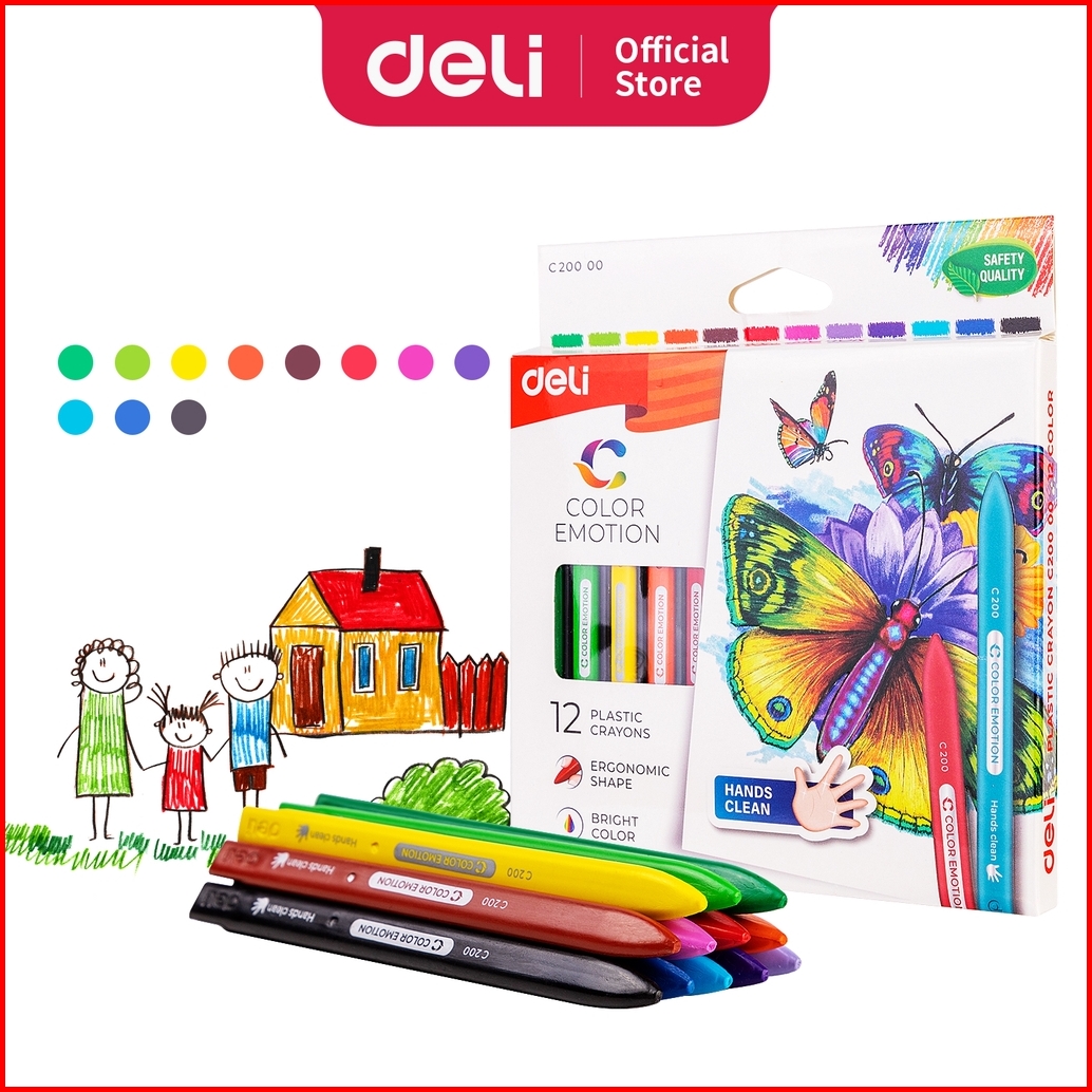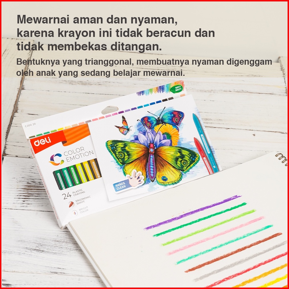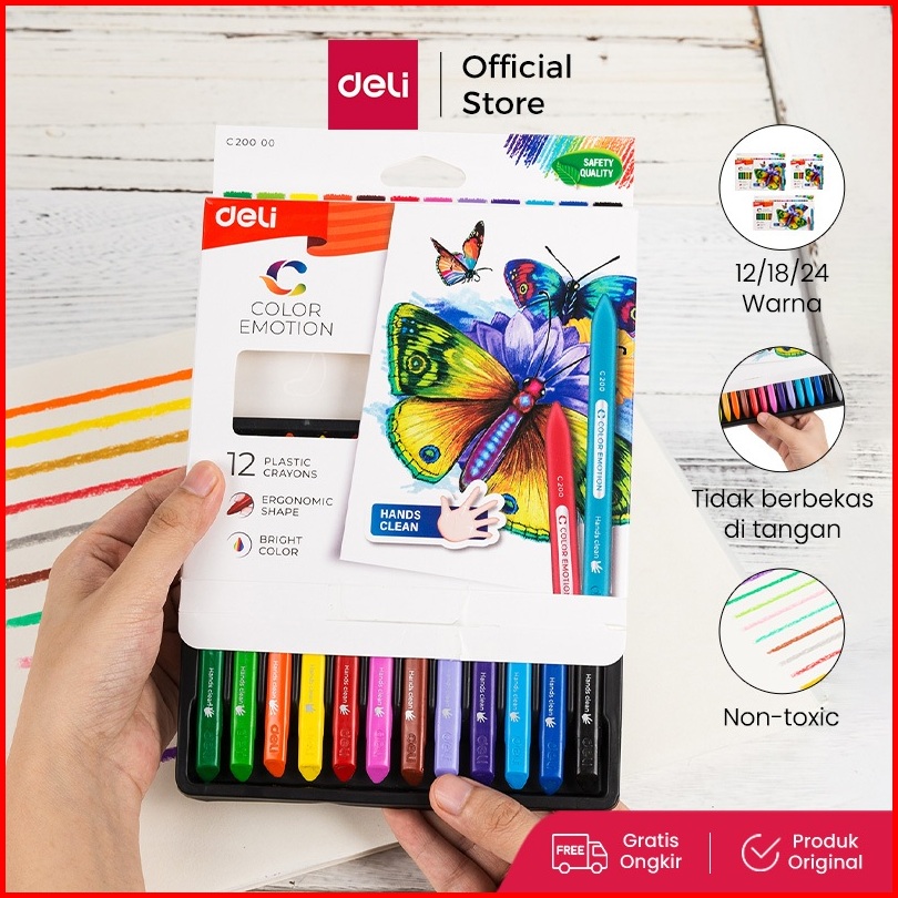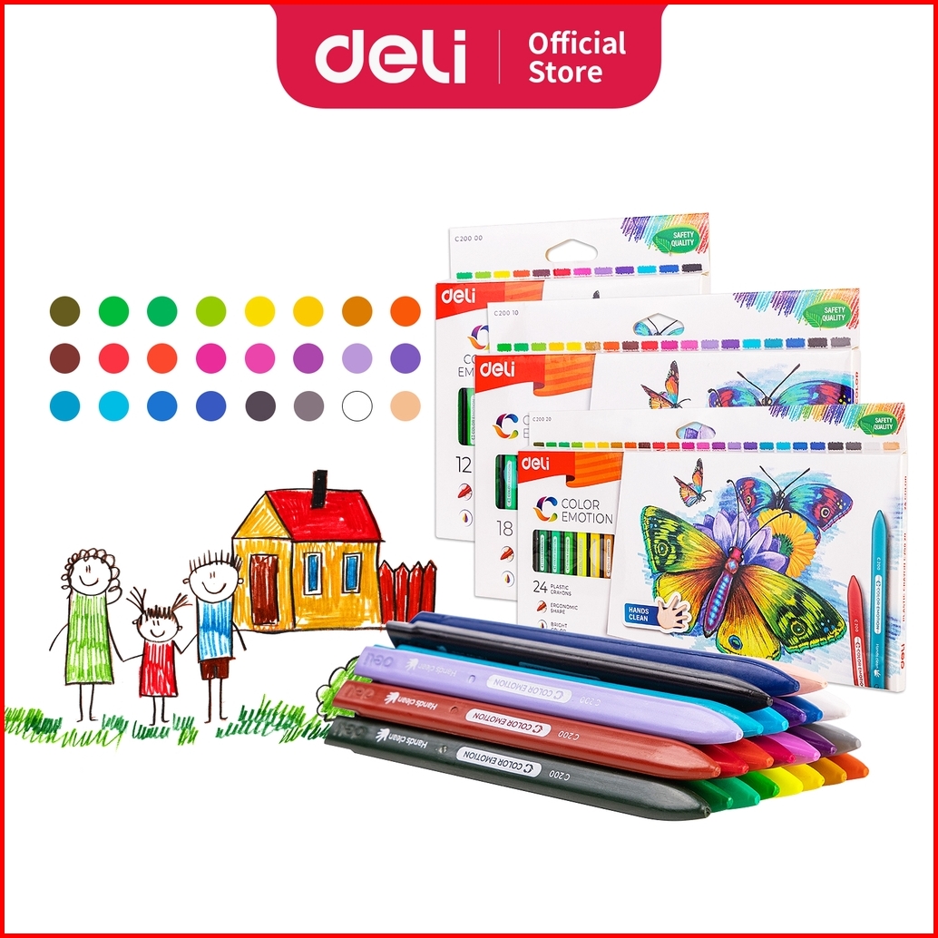 Deli Krayon Sekolah 12 18 24 Warna Cerah Bentuk Segitiga Ergonomis Tidak Beracun Ec20010