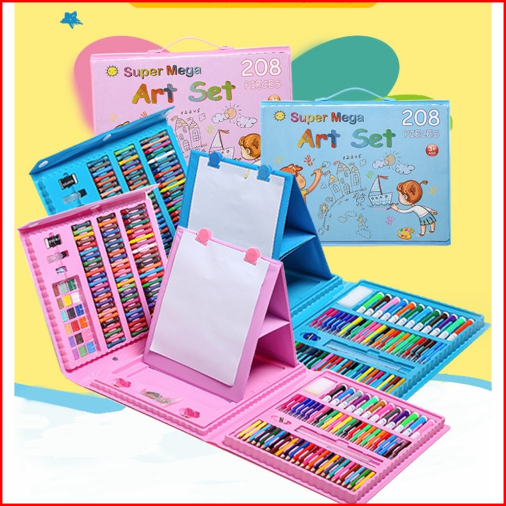 Crayon Set Shenar Crayon Set 208 Pcs Alat Menggambar Mewarnai Anak Pensil Warna Krayon Anak - Mega Art 208 Pcs