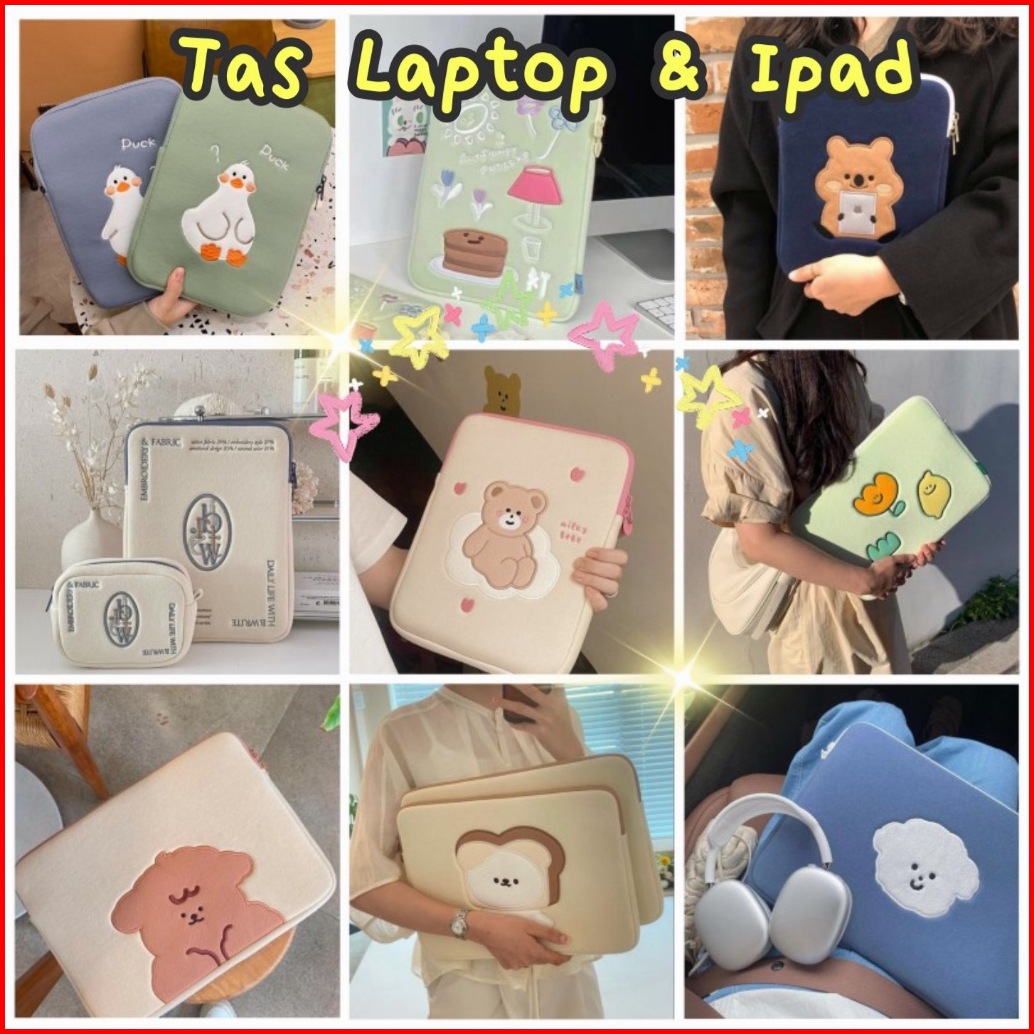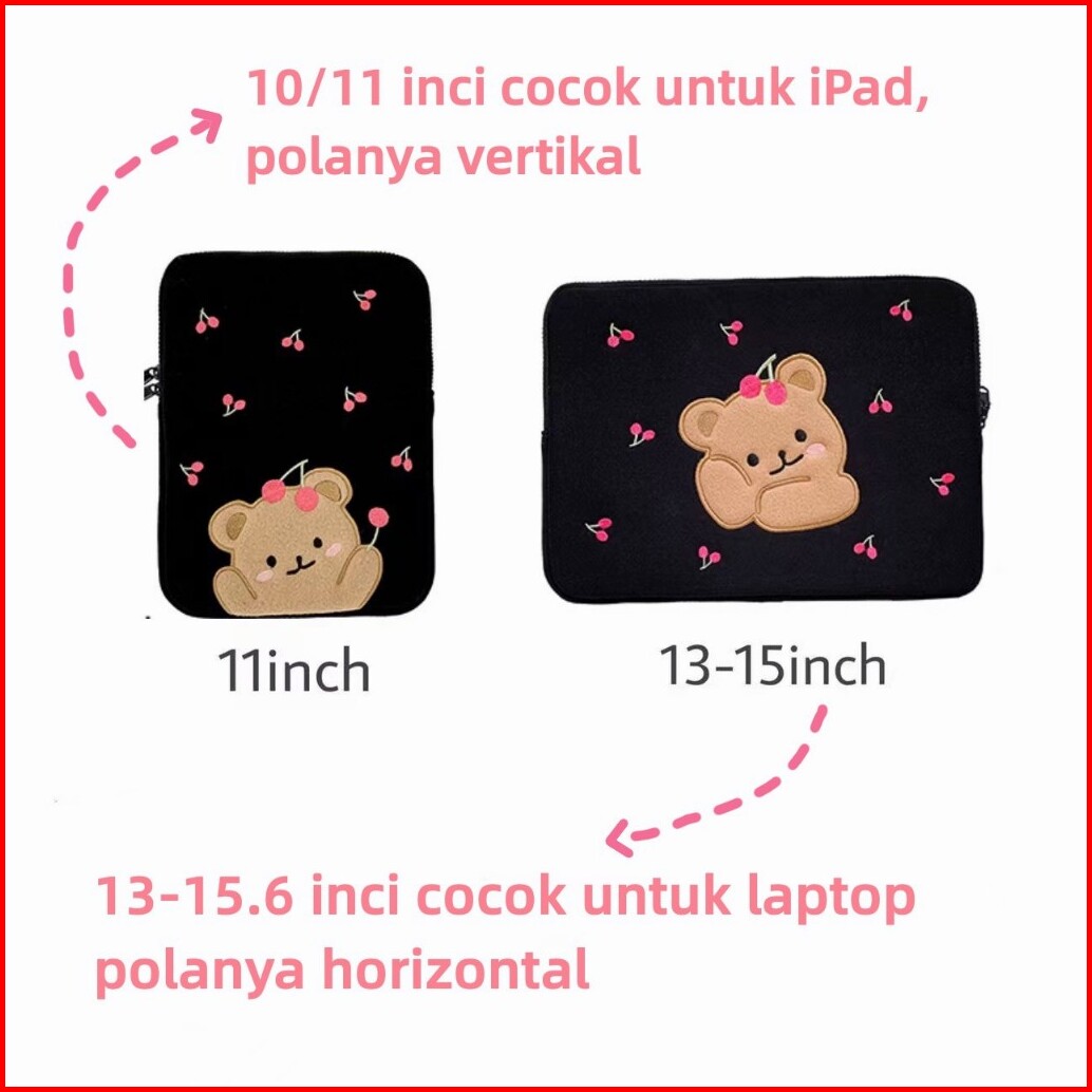 Tas Laptop Tablet Liner Sarung Pouch Tas Komputer Bordir Gaya Korea 10.9 11 13 14 15 15.6inch