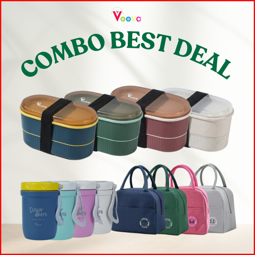 Voova Combo Best Deal Kotak Bekal 3 In 1 Lunch Box Set Lunch Bag Set Paket Hemat Paket Bekal Sekolah Lunch Bag Anak Leng