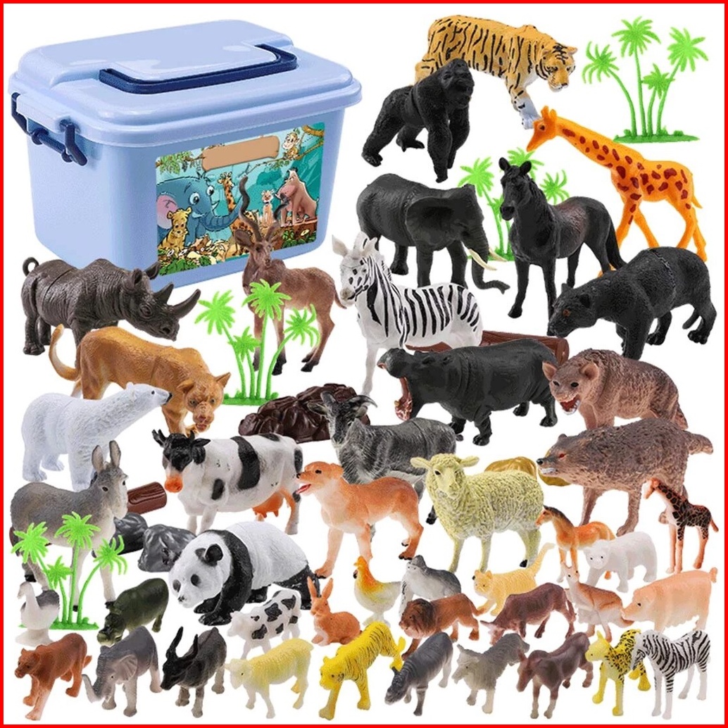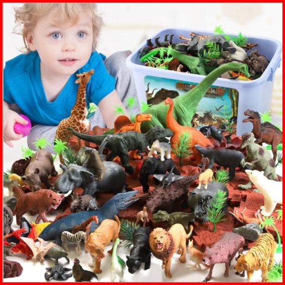 Mainan Figurine Miniature Animals Or Dinosaurs - Animal 58 Pcs Dino 44 Pcs