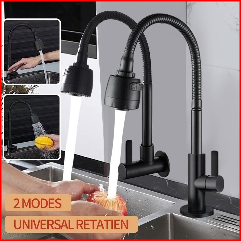 Sus304 Kran Angsa Fleksibel Kran Cuci Piring Hitam Kran Cuci Piring Dinding Anti Karat Promo Harga Agen Penyesuaian Air