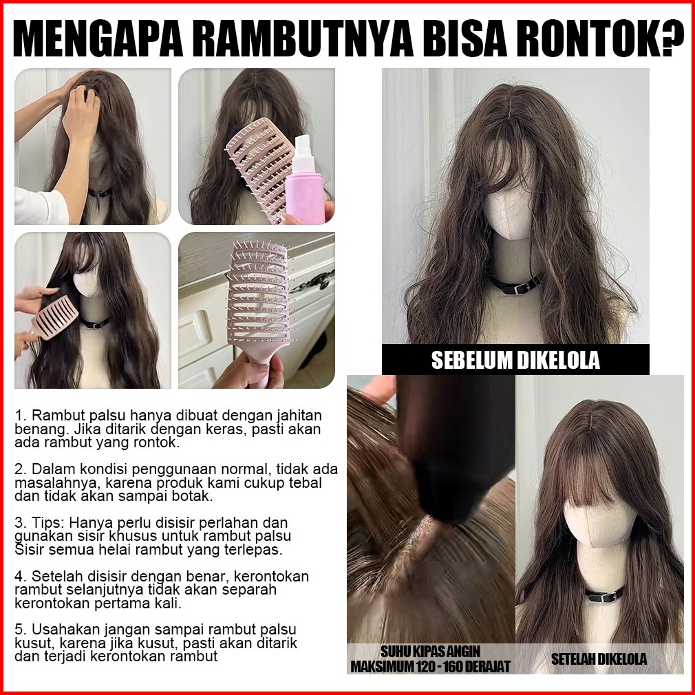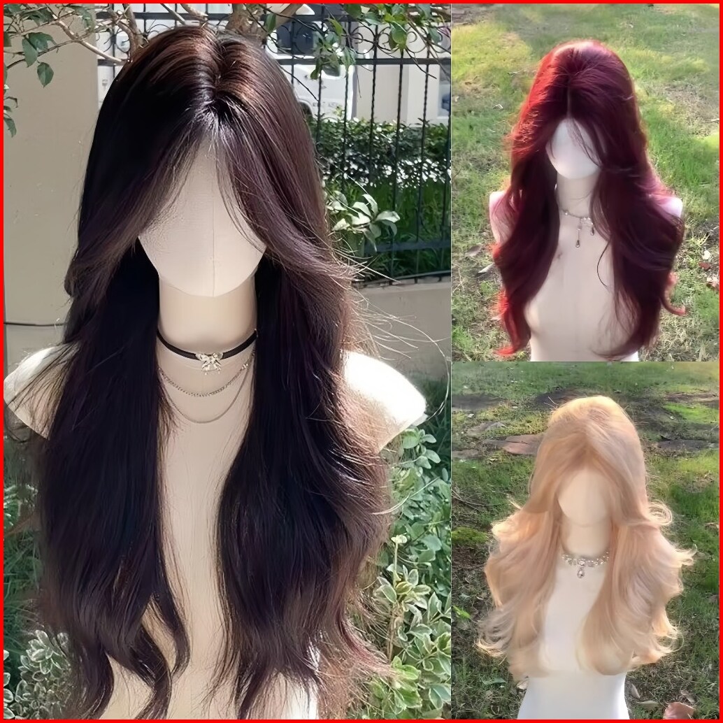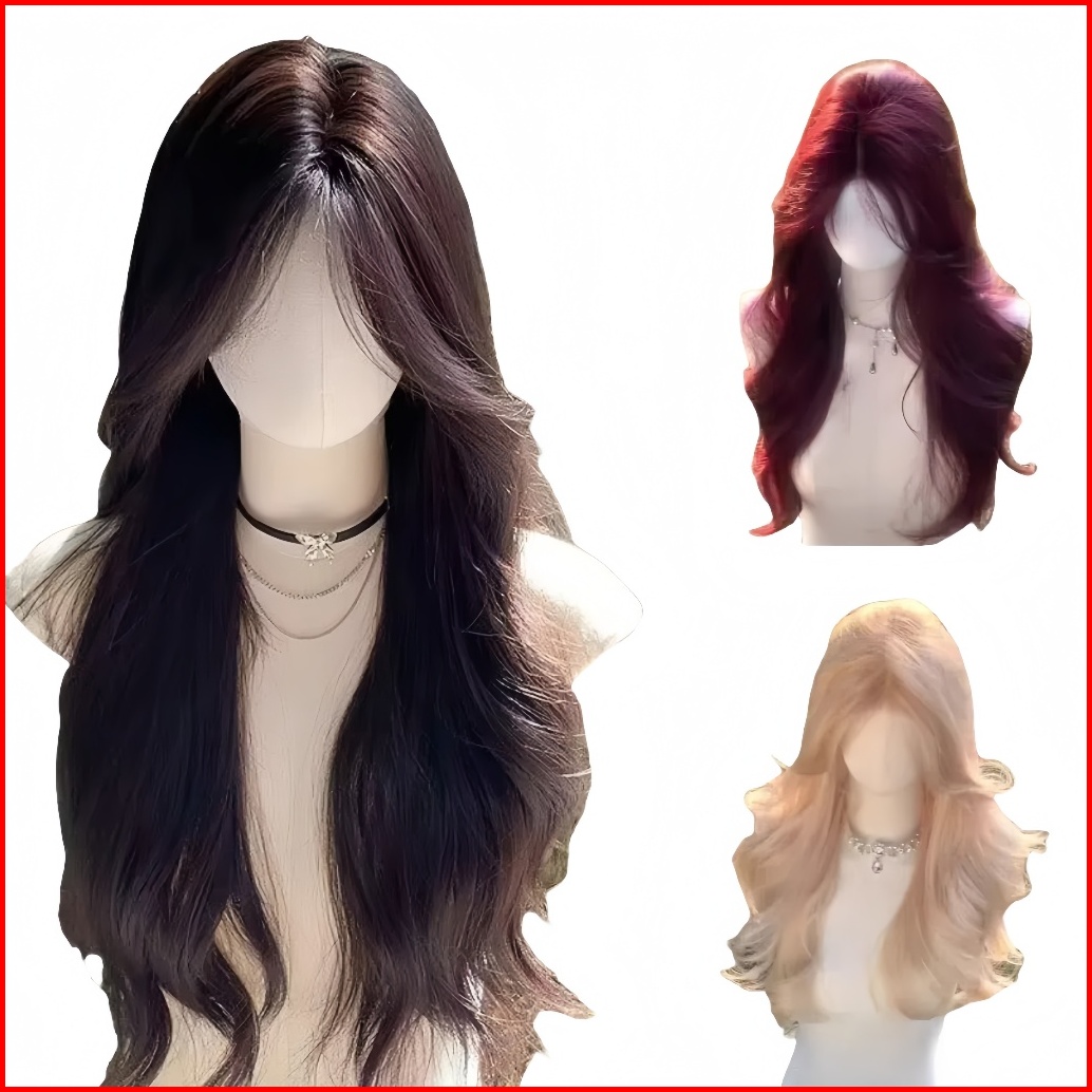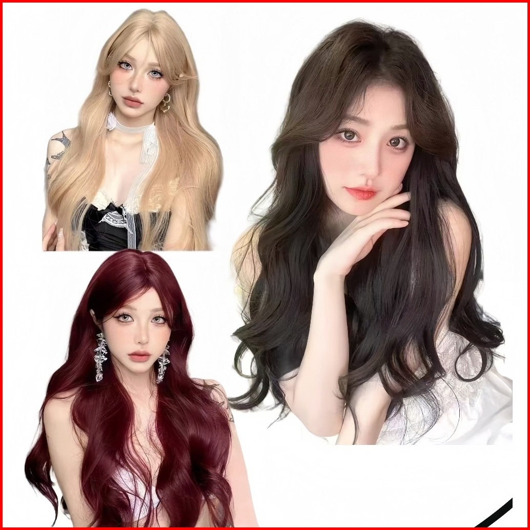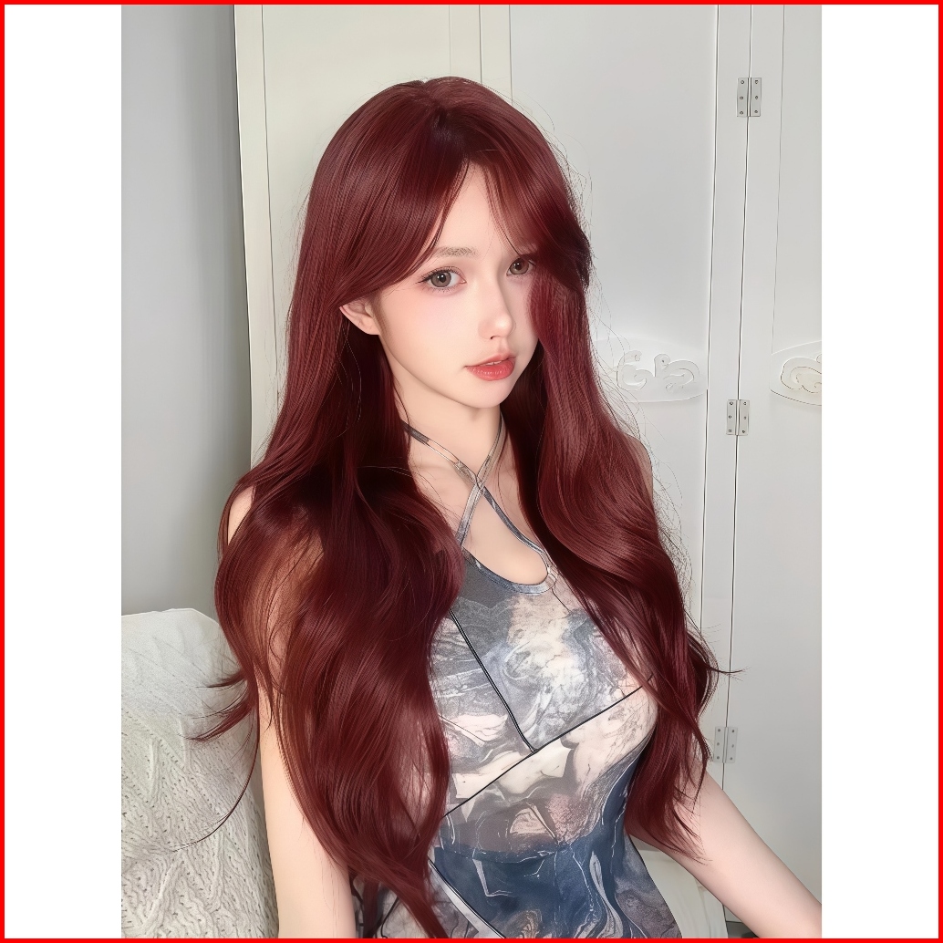 Wig Wanita Full Kepala Wig Rambut Panjang Curly Wig Panjang Raspberry Merah 60cm Rambut Panjang Wanita Wig Curly Rambut