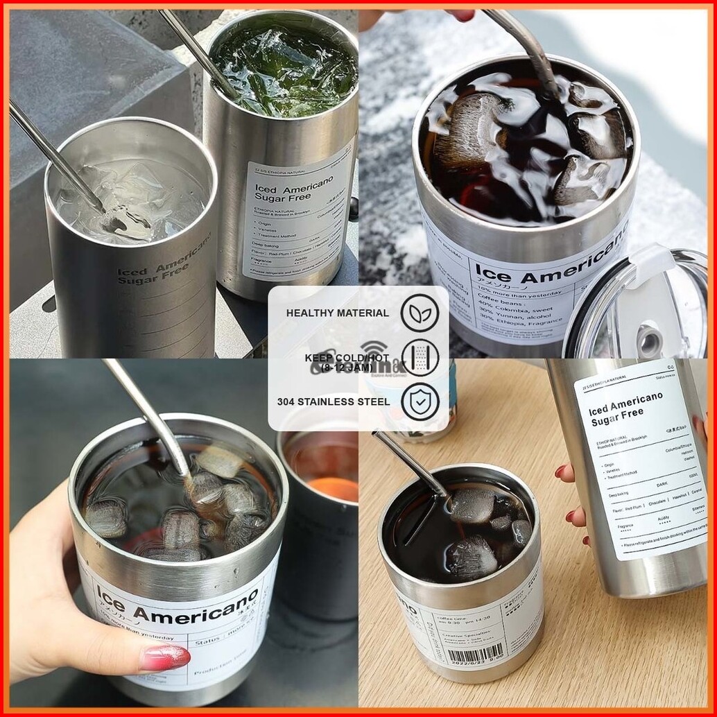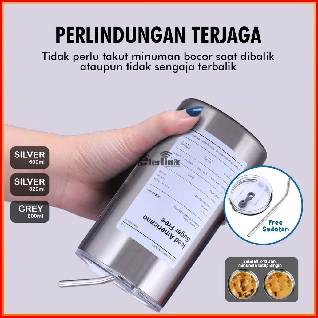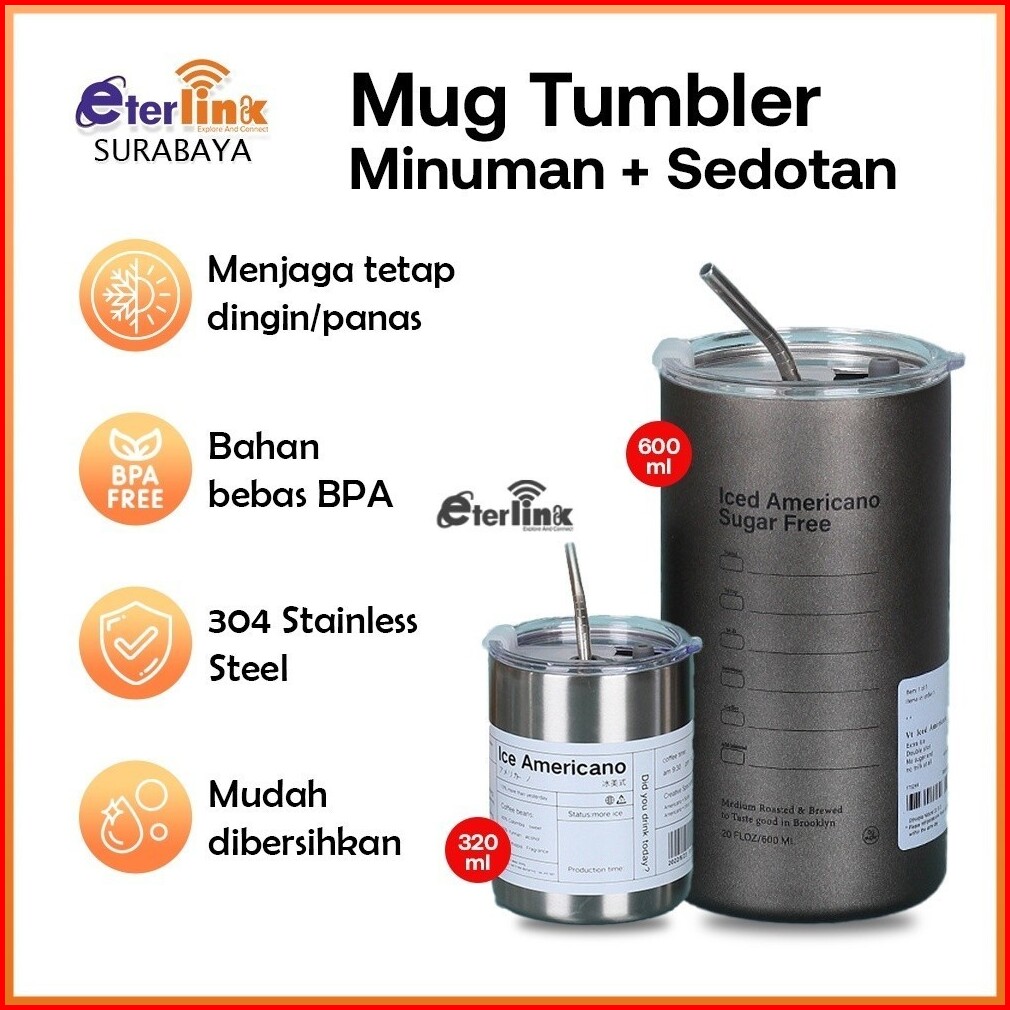 320ml 600ml Botol Minum Stainless Tumbler Coffee Cup Gelas Stainlesssteel Tumblr Free Sedotan