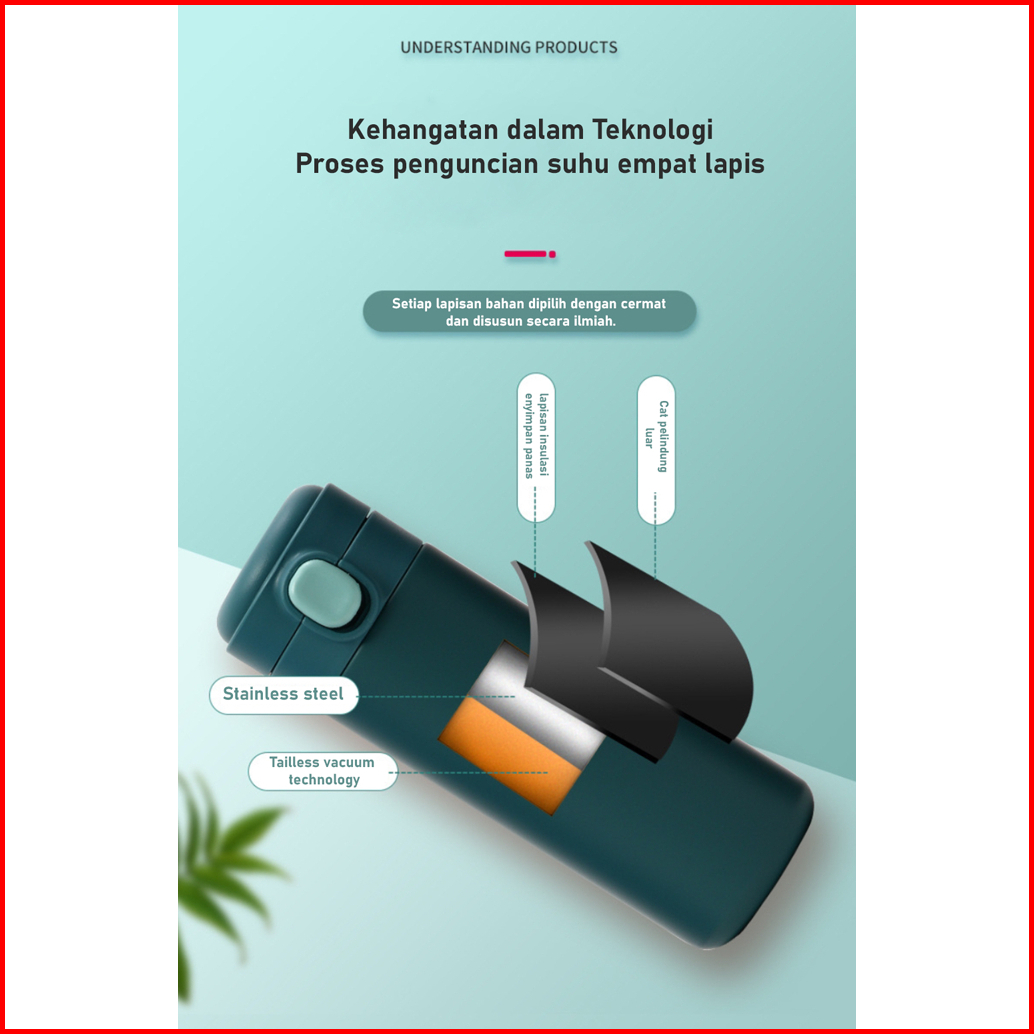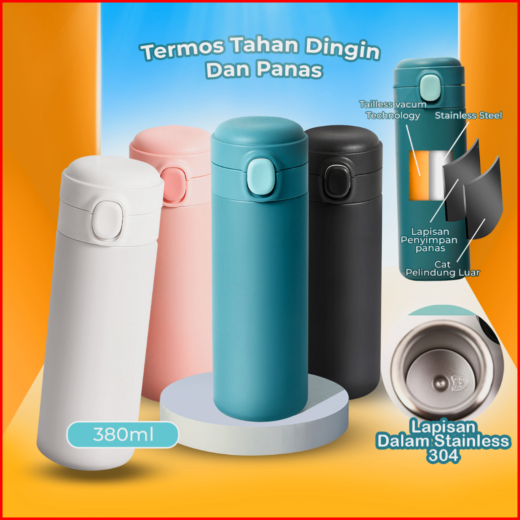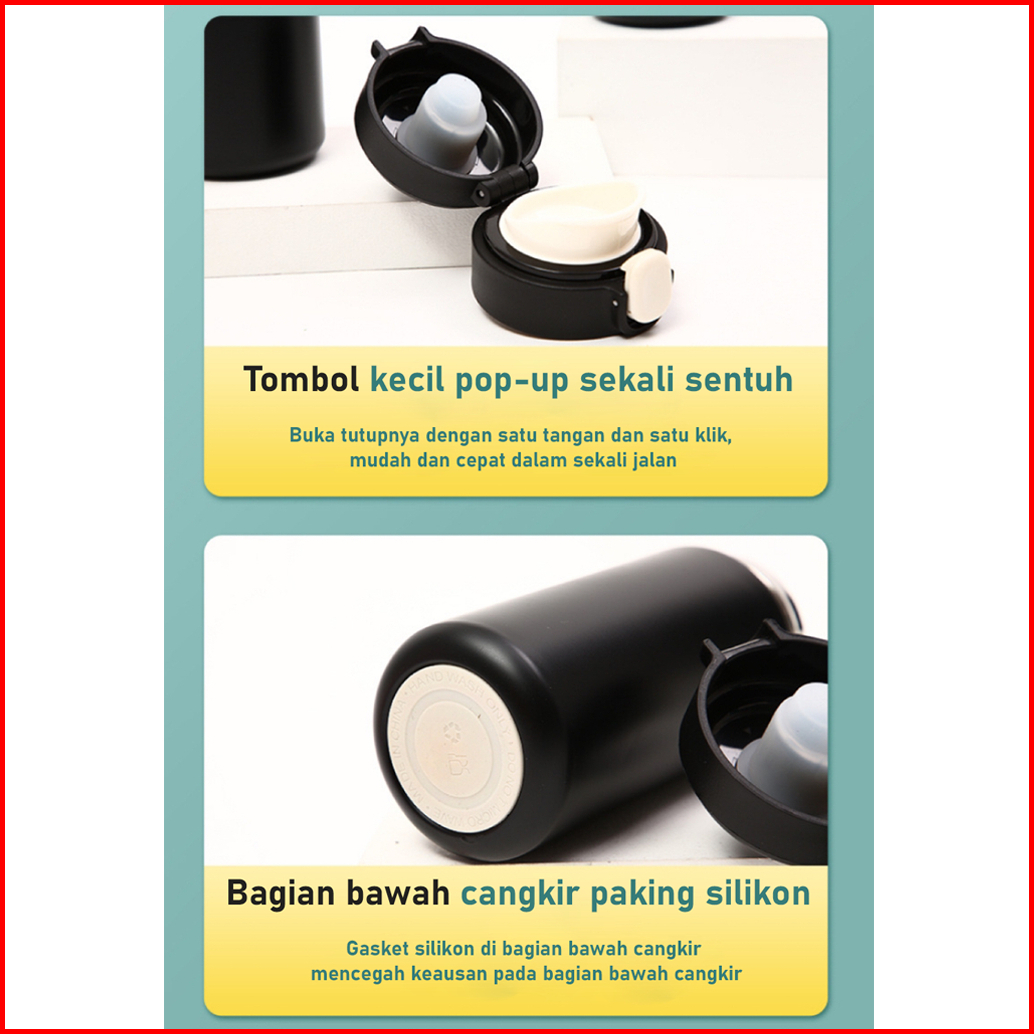 Kim-b006 Stainless Steel Tumblr Tumbler Teh Termos Tahan Dingin Dan Panas Tumbler Kancing Termos Kecil Botol Minum Lucu