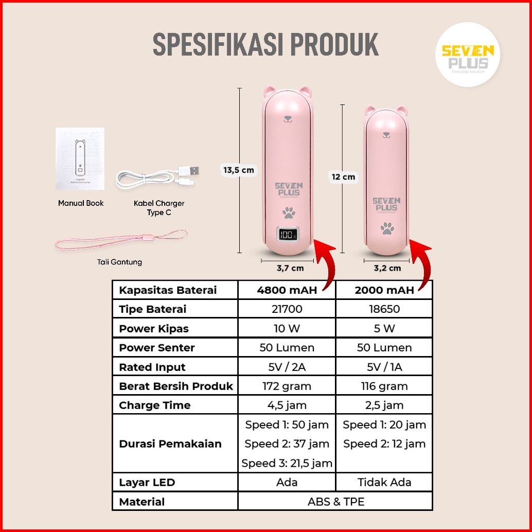 Sevenplus Kipas Angin Mini Portable Original 4800mah Multifungsi Charge Usb Kipas Angin Super Mini Genggam Kipas Lipat P