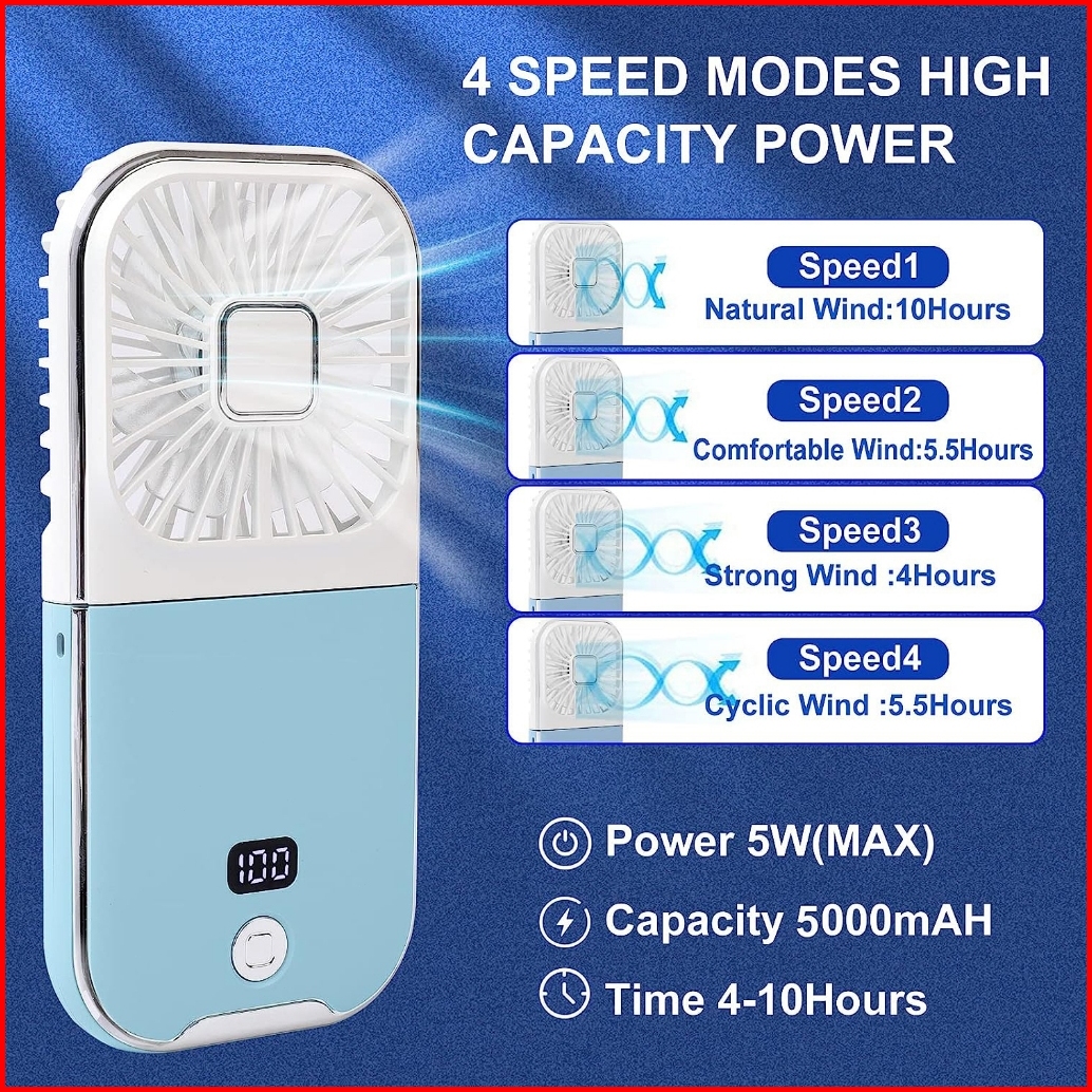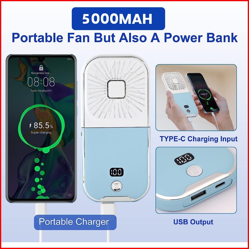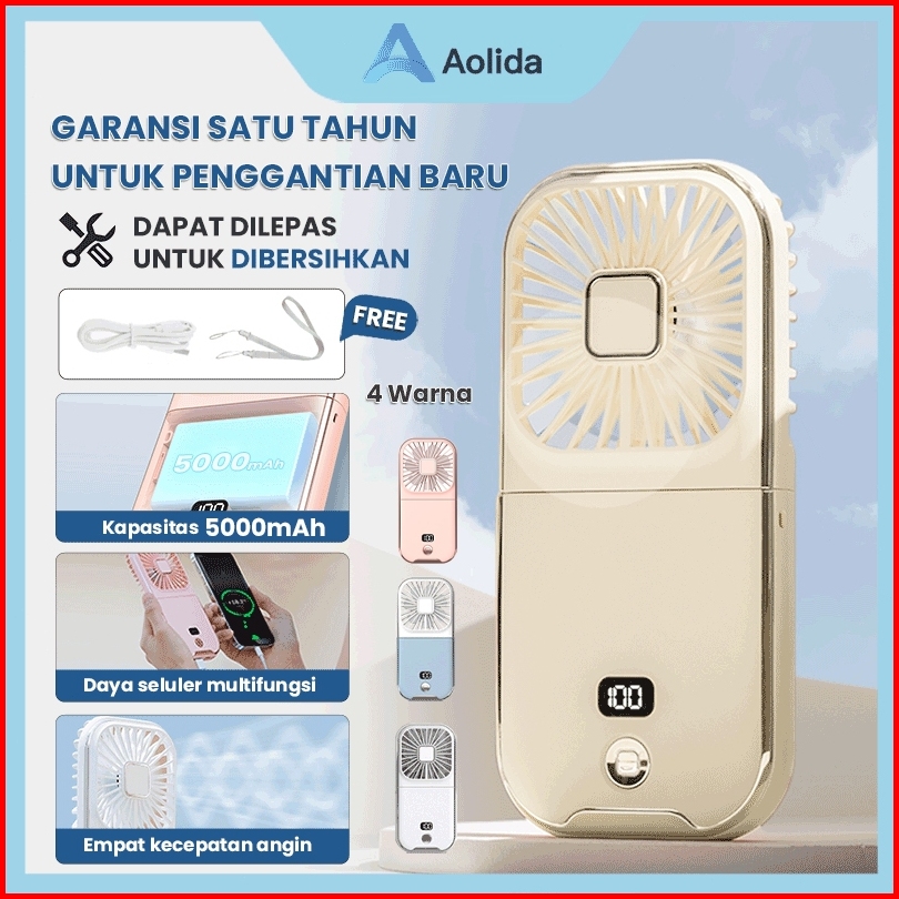 Aolida Kipas Angin Portable Mini Type-c Led Menunjukkan Lipat Dudukan Ponsel Dan Powerbank 5000mah Baterai Tahan Lama Co