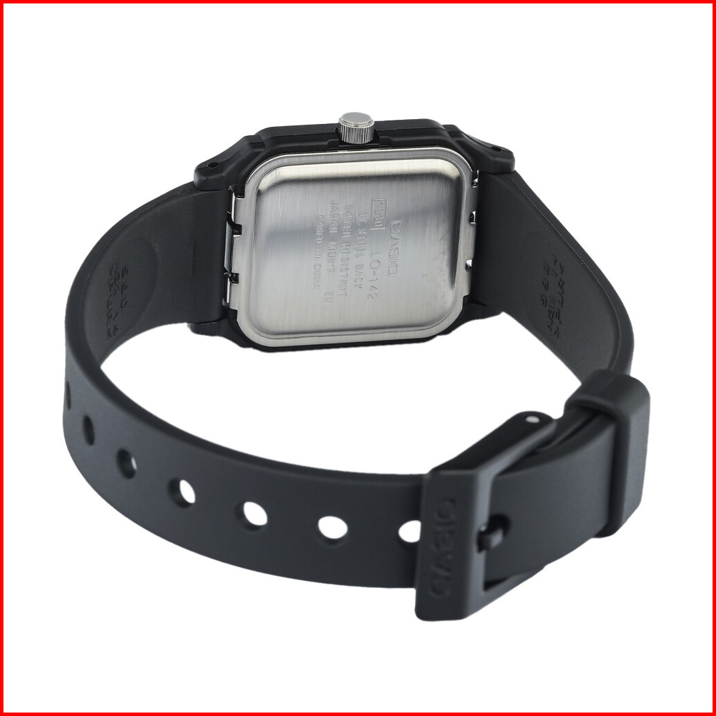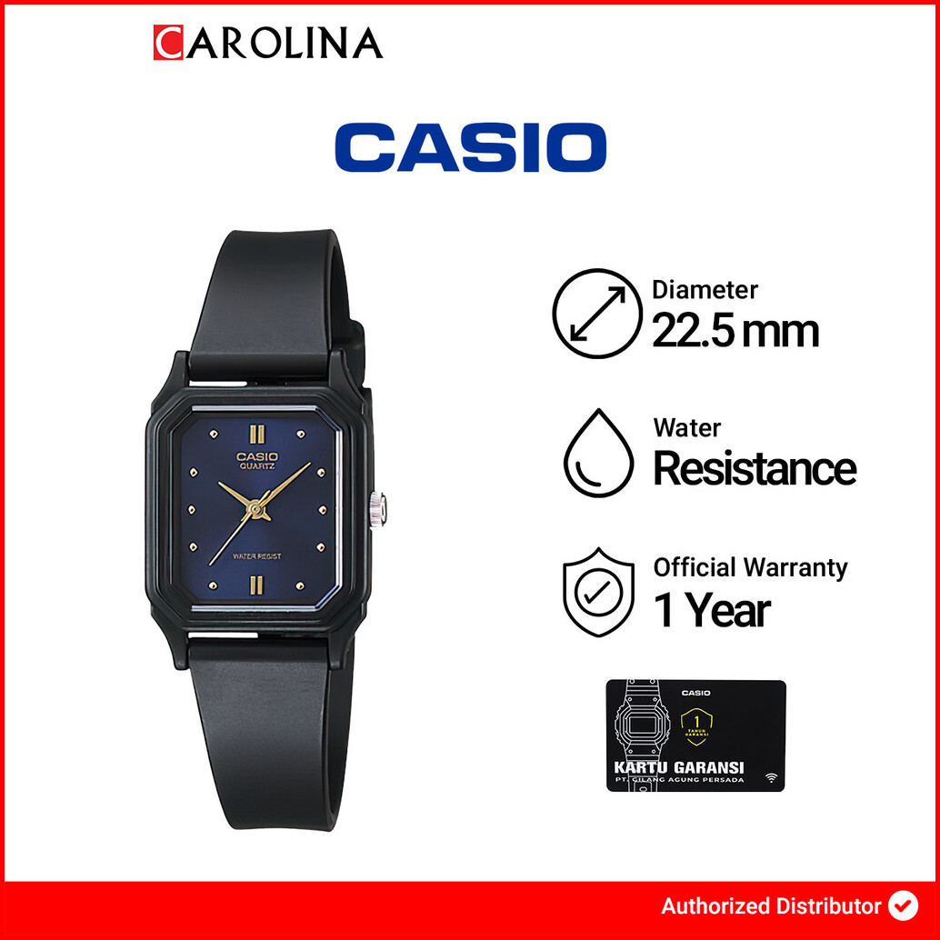 Jam Tangan Unisex Casio General Lq-142e-2a Blue Dial Black Rubber Band