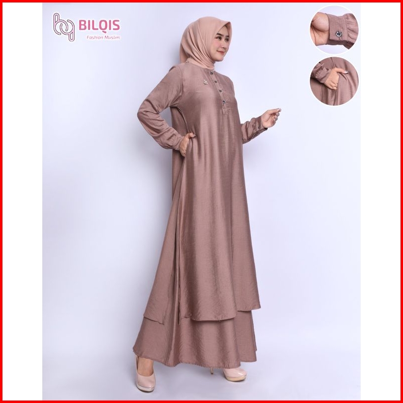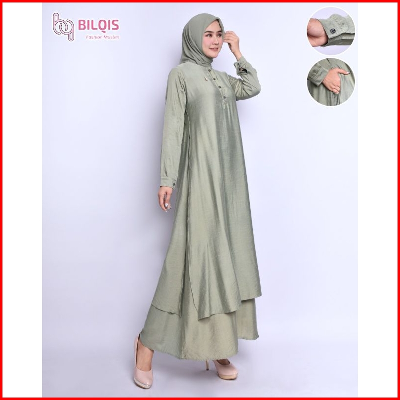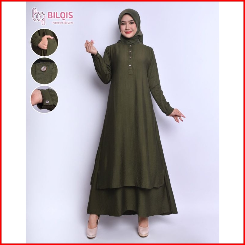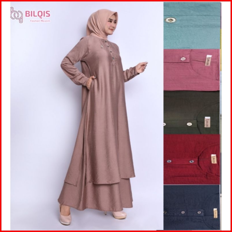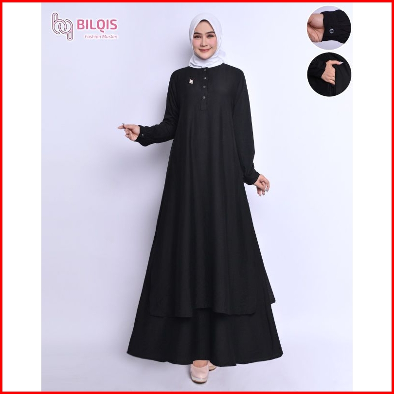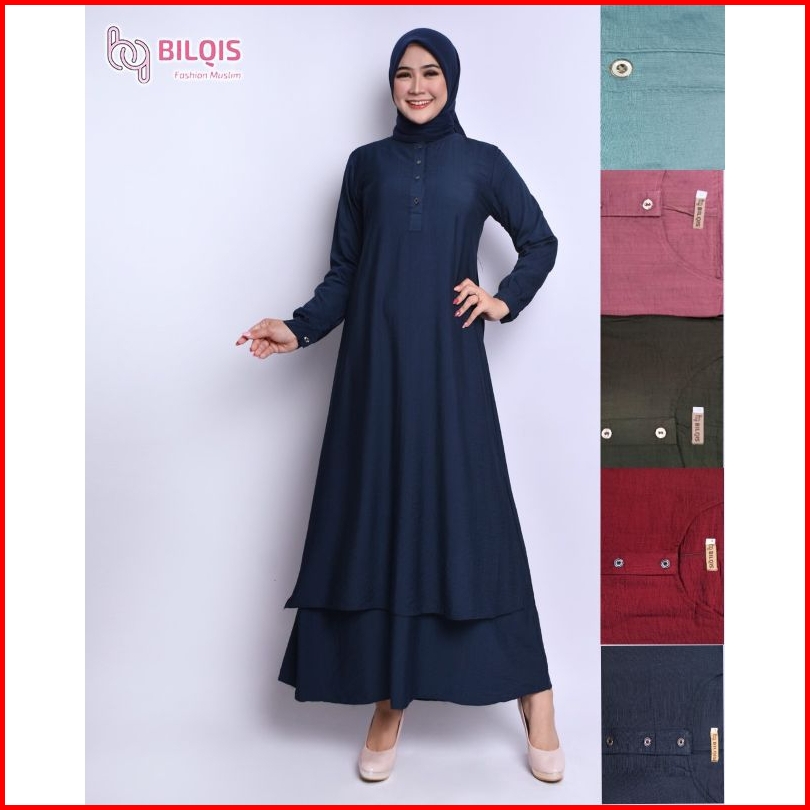 Bilqis Gamis Malaysia Katun Polo Linen Ukuran M-xxxl