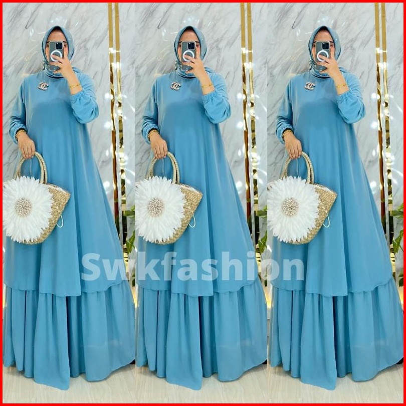 Gamis Malaysia Polos Seruty Babydoll Adem Busui