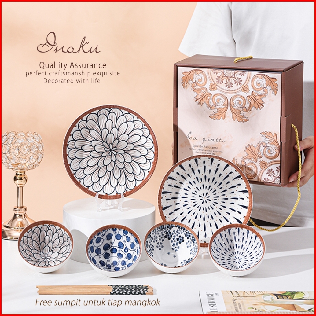 Inoku Hampers Japanese Plate Bowl Set Piring Mangkok Keramik Mangkuk Jepang Souvenir Suvenir Gift Box Wedding Bingkisan