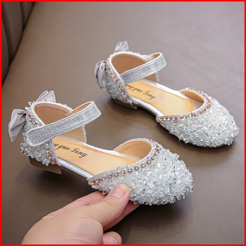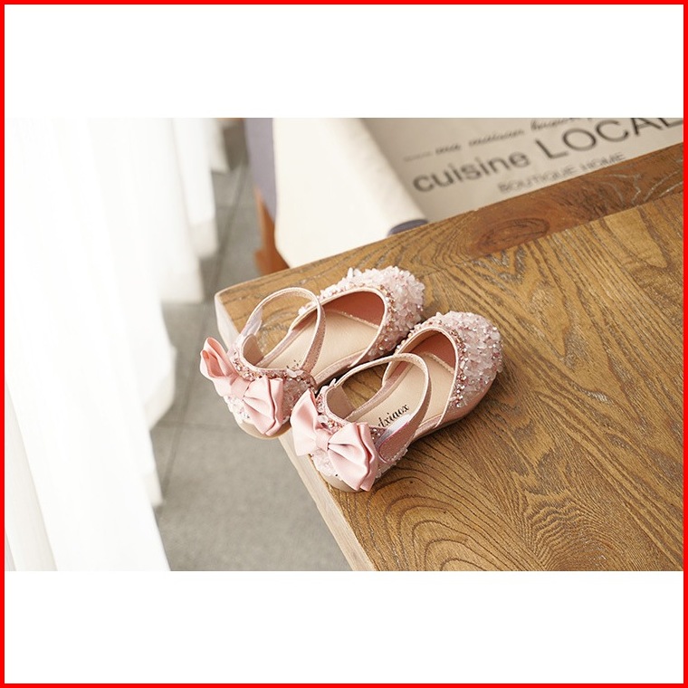 Sepatu Pesta Anak Perempuan Mutiara Free Kotak Sepatu Flat Anak Cewek Anti Licin Flat Shoes Anak Model Korea Sol Lembut