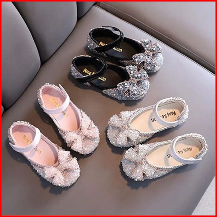 Sepatu Pesta Princess Anak Perempuan Blink Pita Kristal Import