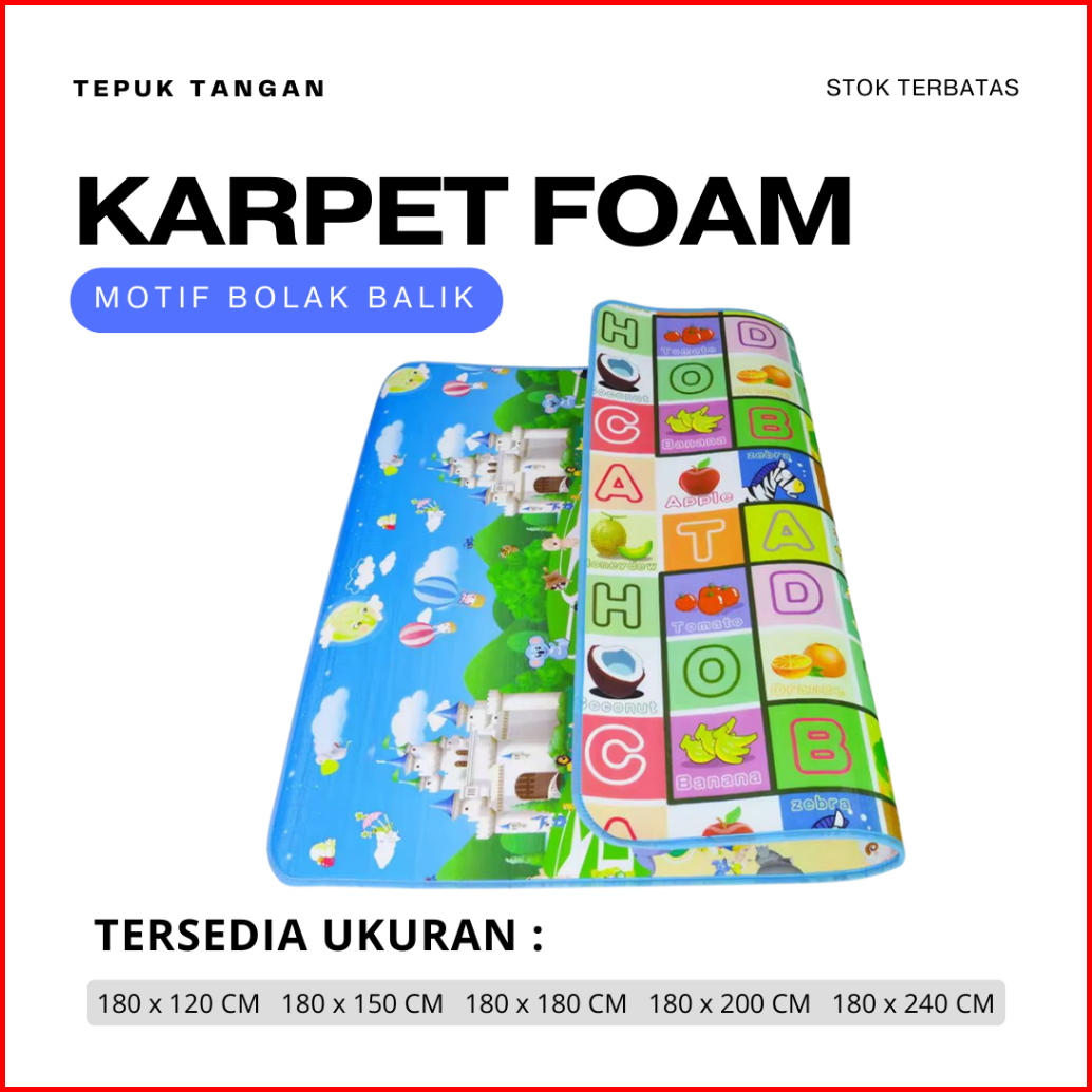Karpet Foam Pe Motif Bolak-balik Ukuran 240 200 180 150 120 Tikar Piknik Jumbo Tebal Karpet Anak Alas Kasur Tikar Motif