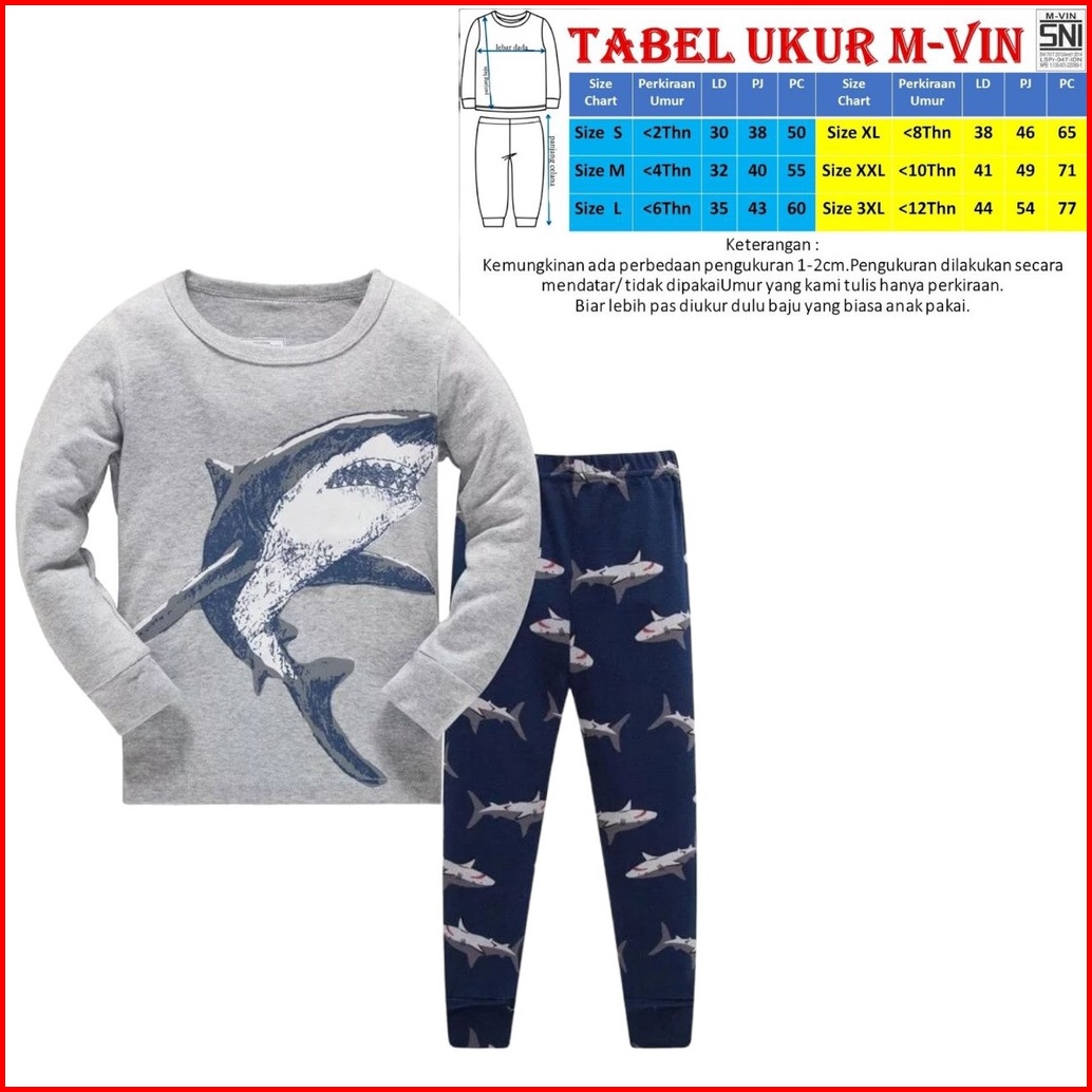 Baju Tidur Anak Setelan Baju Anak Baju Tidur Anak Laki Perempuan - Setelan Panjang Anak 1-9 Tahun Malvin Collection