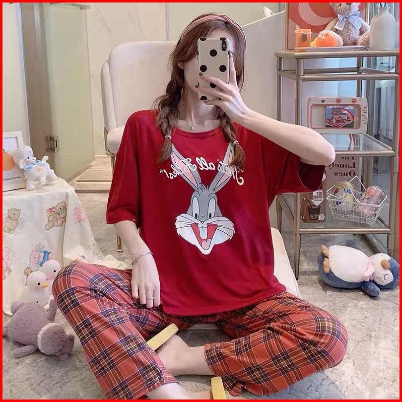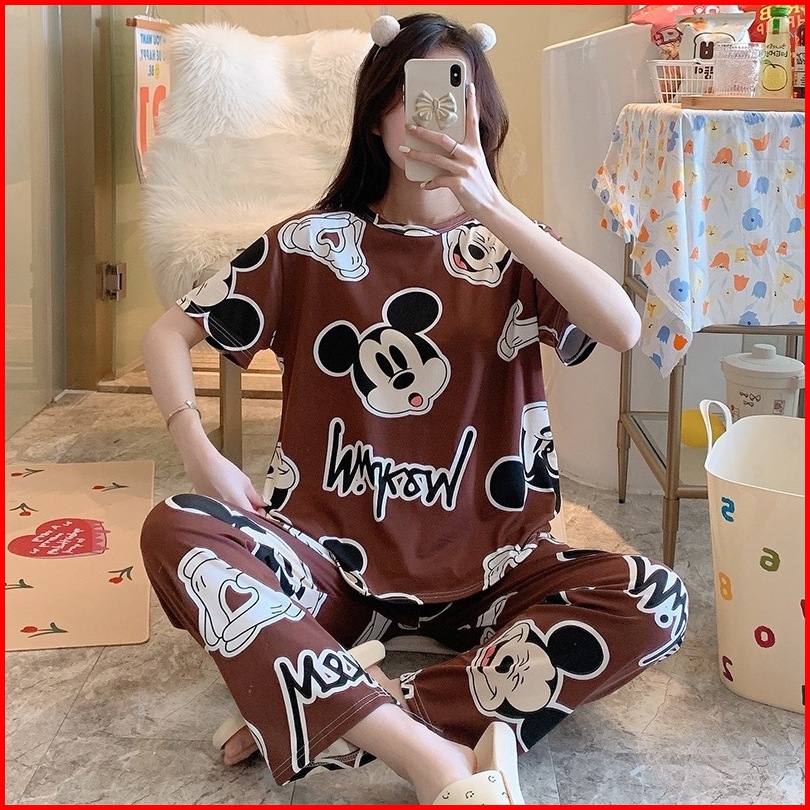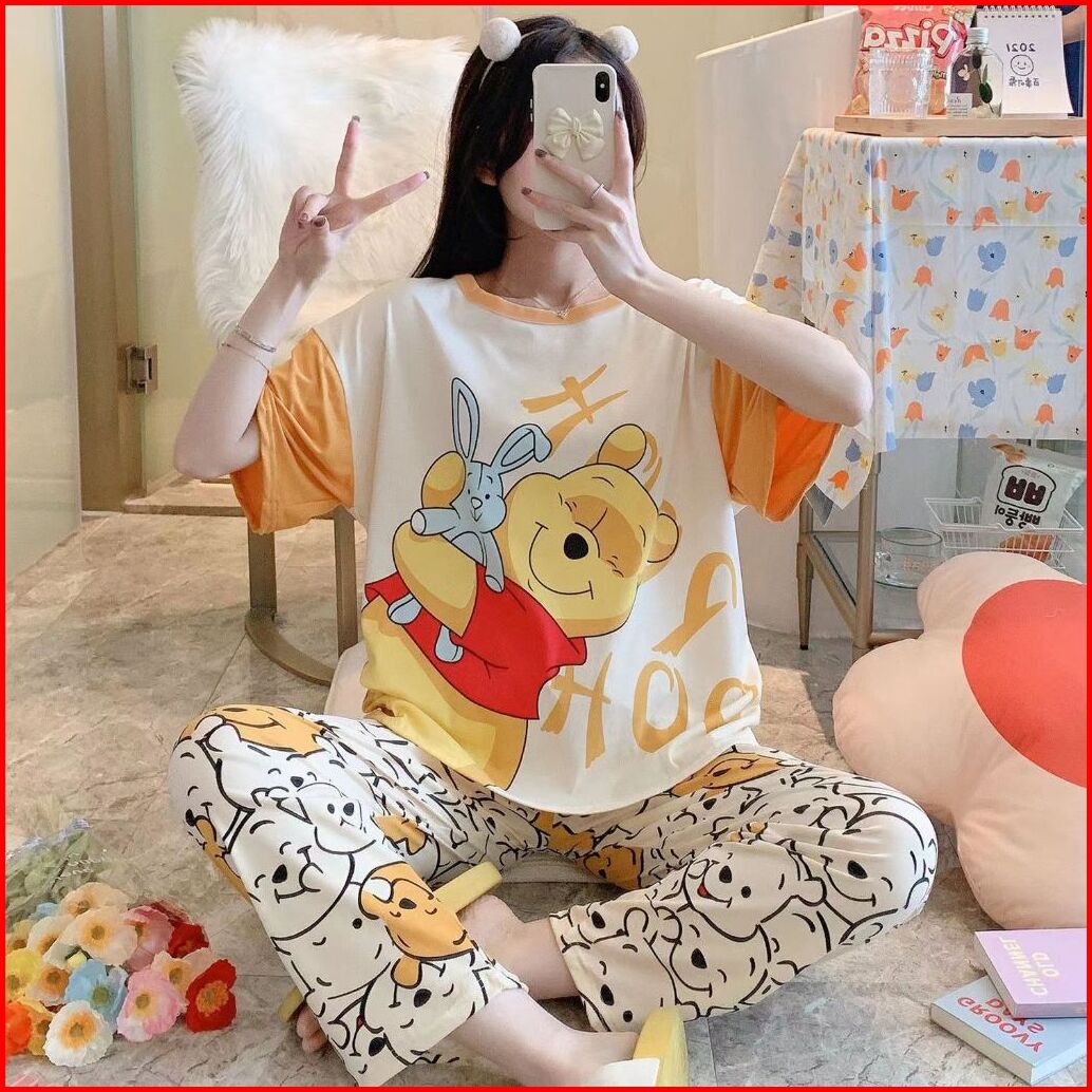 Stelan Wanita Pendek Import Set Piyama Wanita Lengan Pendek Baju Tidur Wanita Dewasa