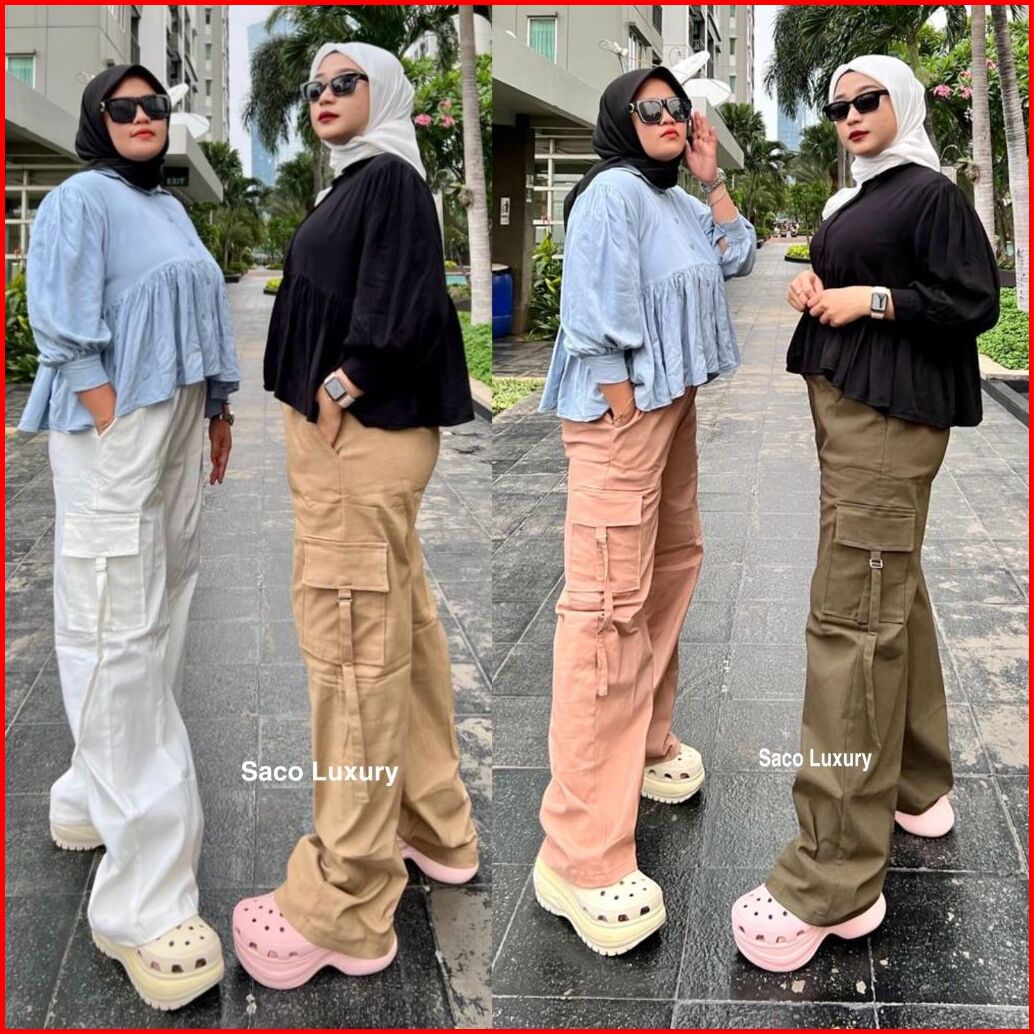 Saco Luxury - Zeba Celana Kulot Cargo Wanita Bisa Jumbo Sampai Bb 100 Kg