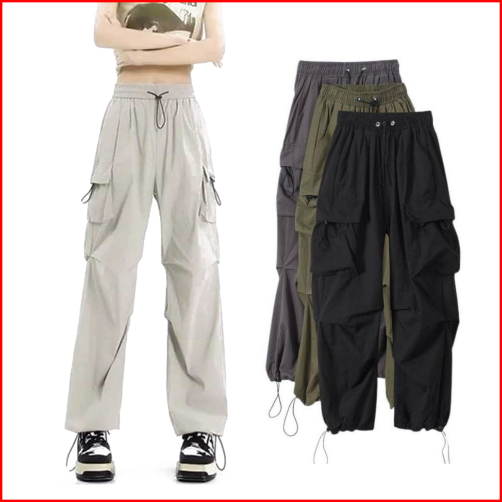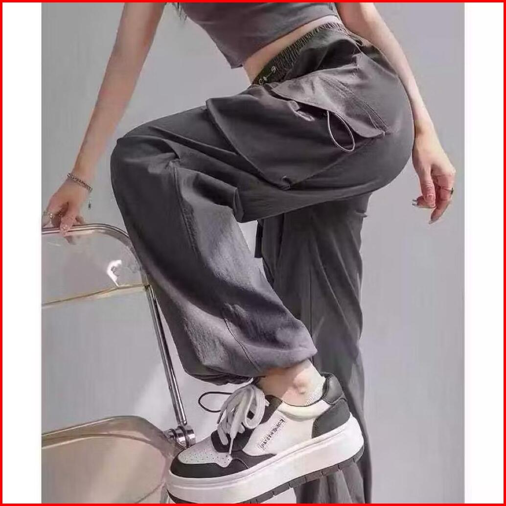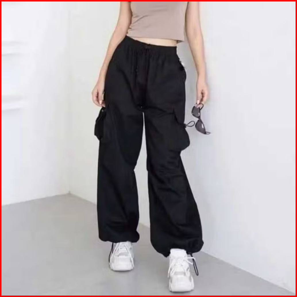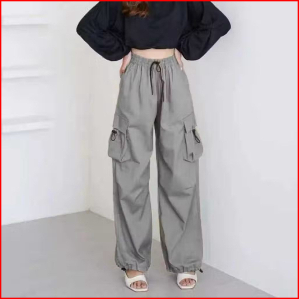 Lobifore - Celana Cargo Wanita Highwaist Loose Pants Trouser Korean Style - Celana Gunung Wanita