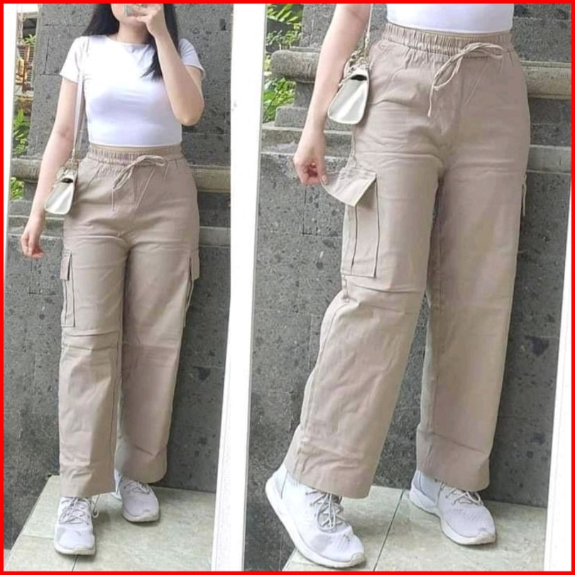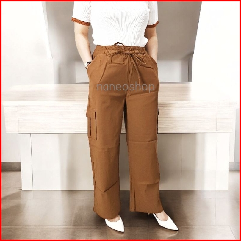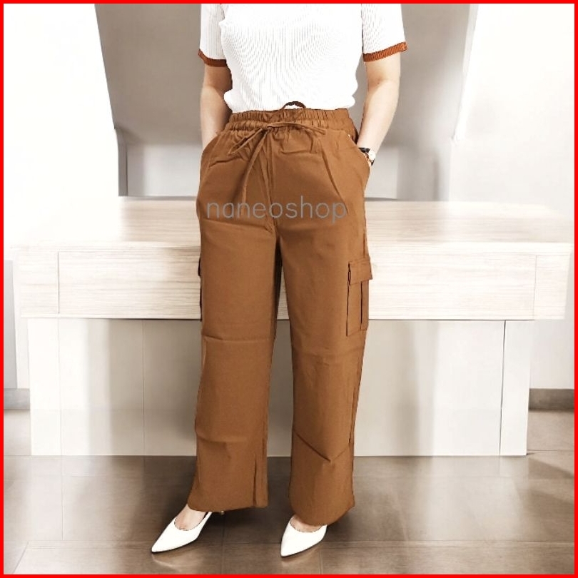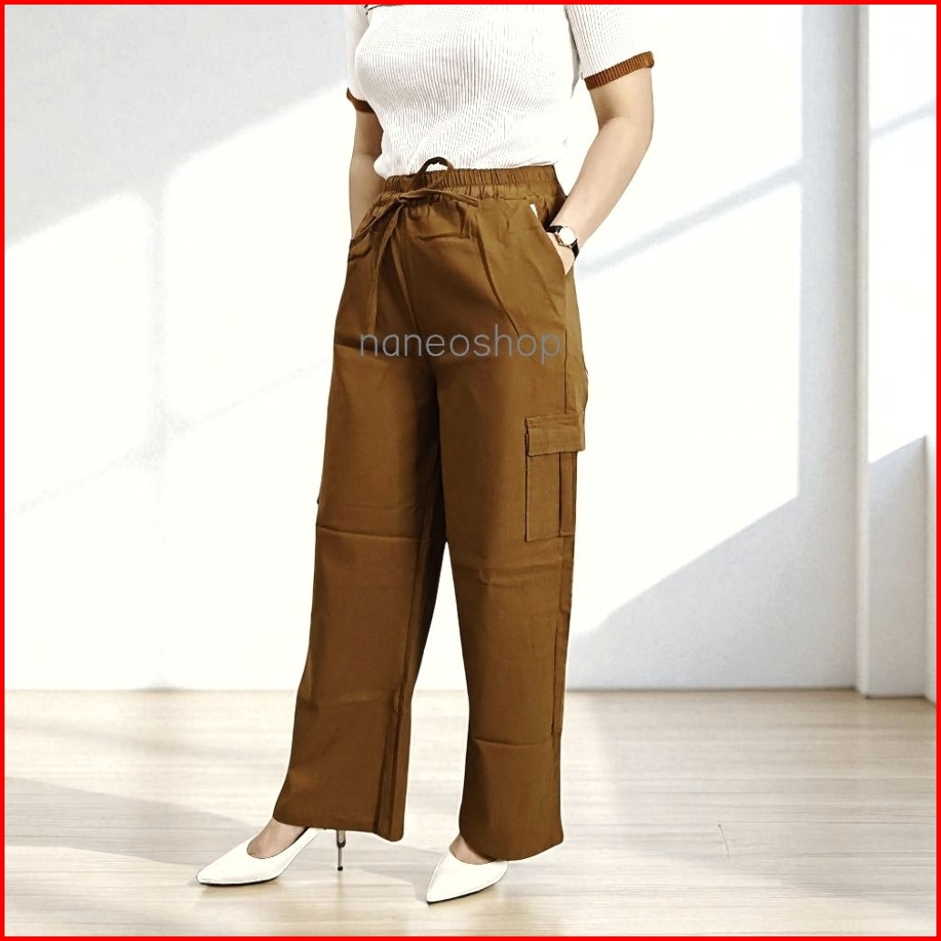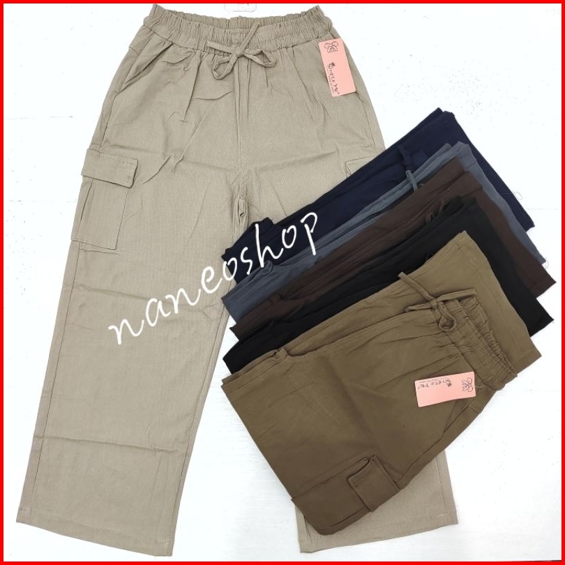 Celana Kulot Panjang Wanita Kulot Cargo Stretch Tebal Simple Me
