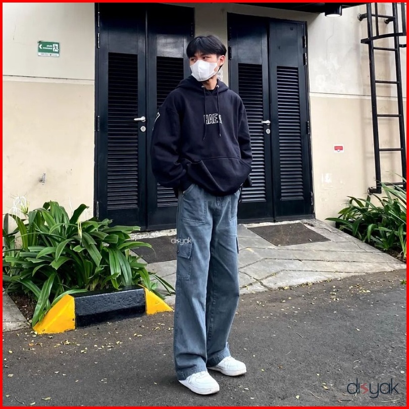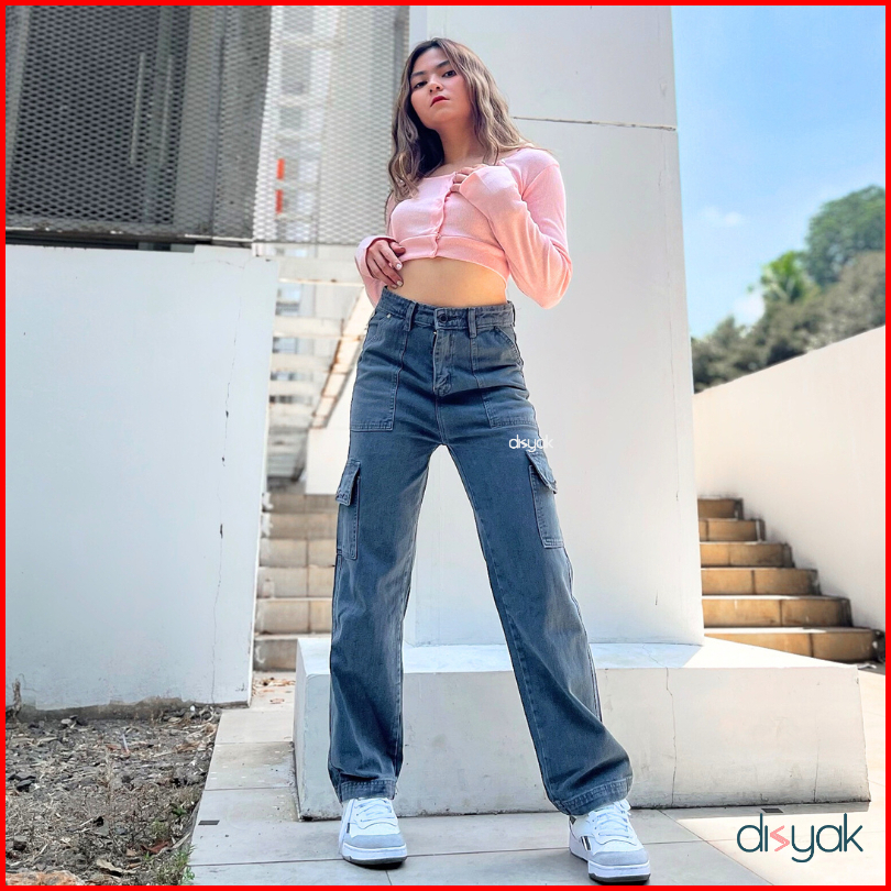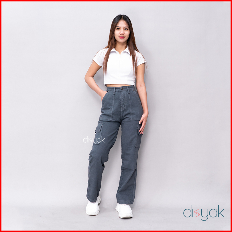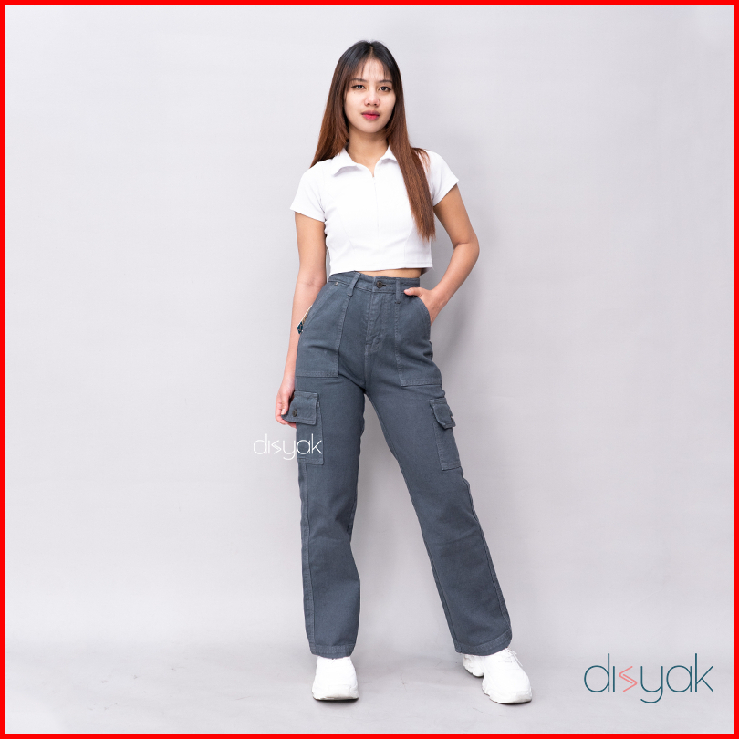 Disyak - Boyfriend Cargo Pants Jeans Non-stretch Grey 713-813