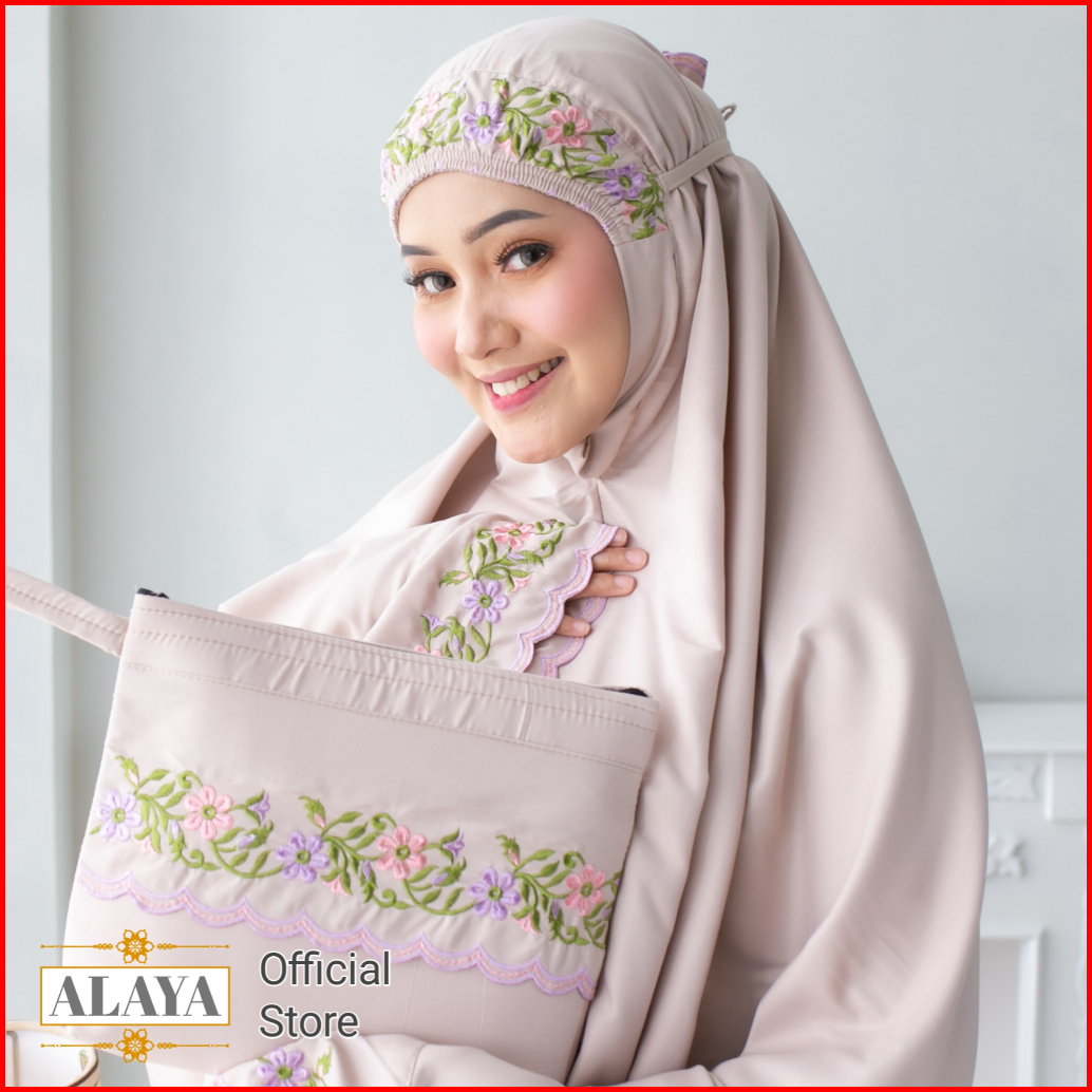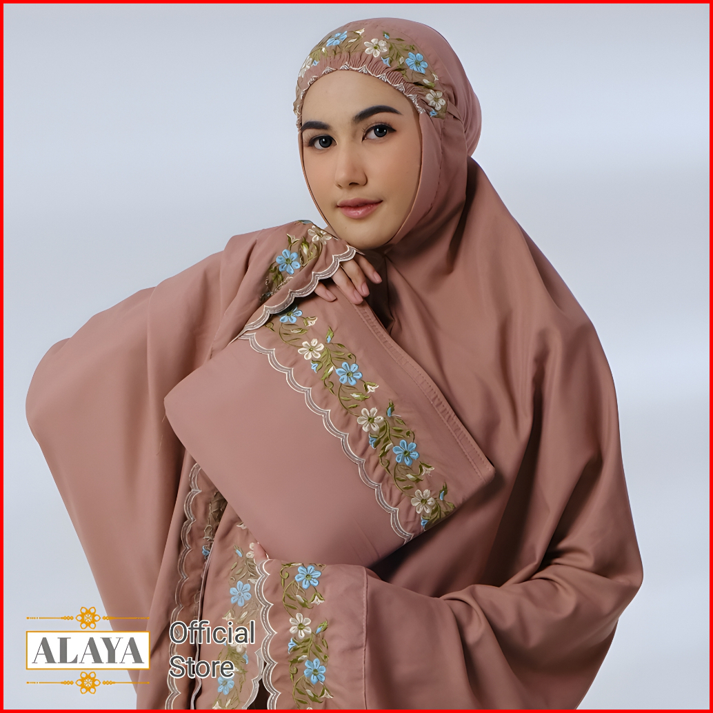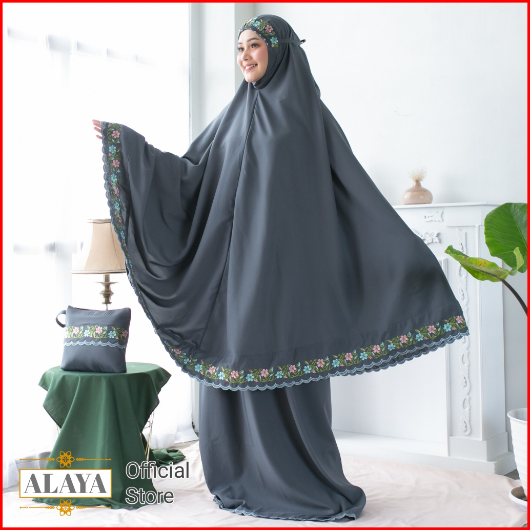 Alaya - Mukena Dewasa Bordir Bunga Alaya Katun Premium Jumbo