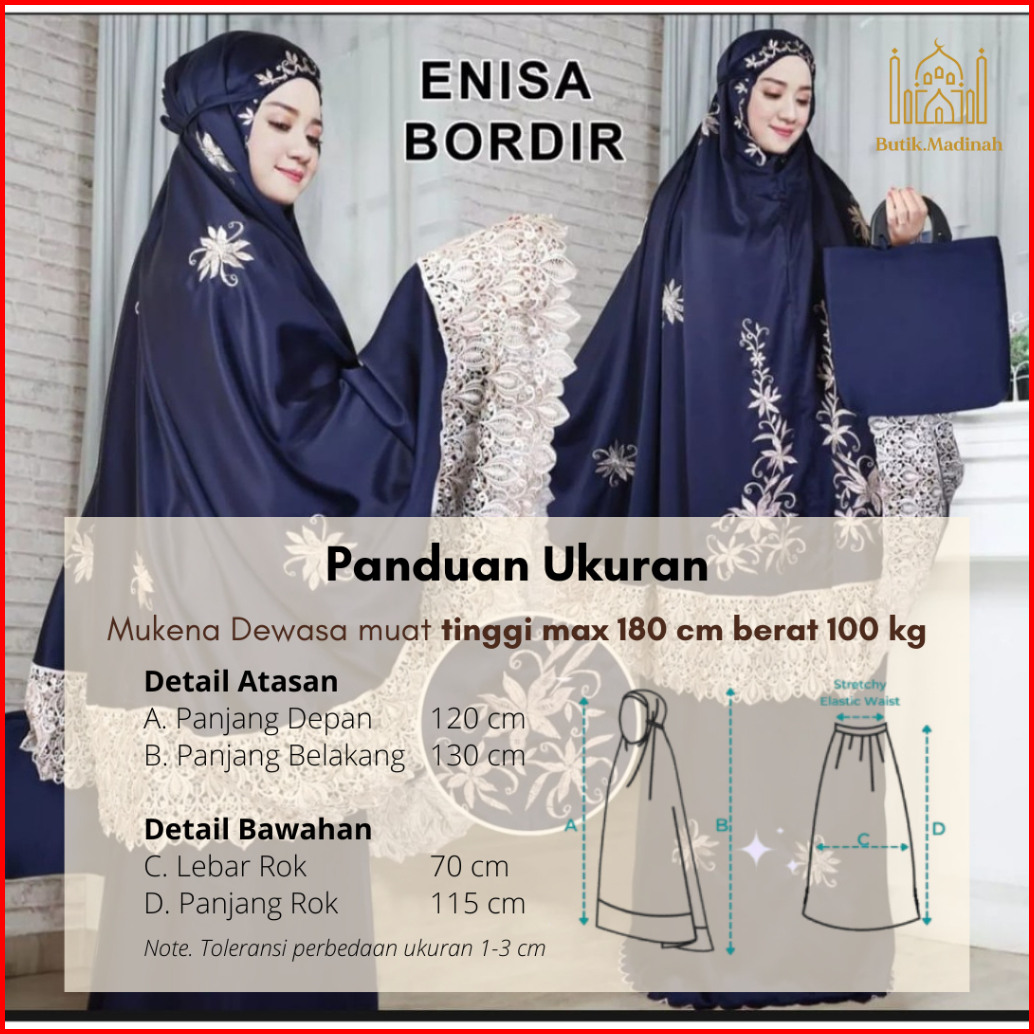 Butik.madinah Mukena Dewasa Enisa Luna Maya Renda Bordir Siti Khadijah Pasteleena