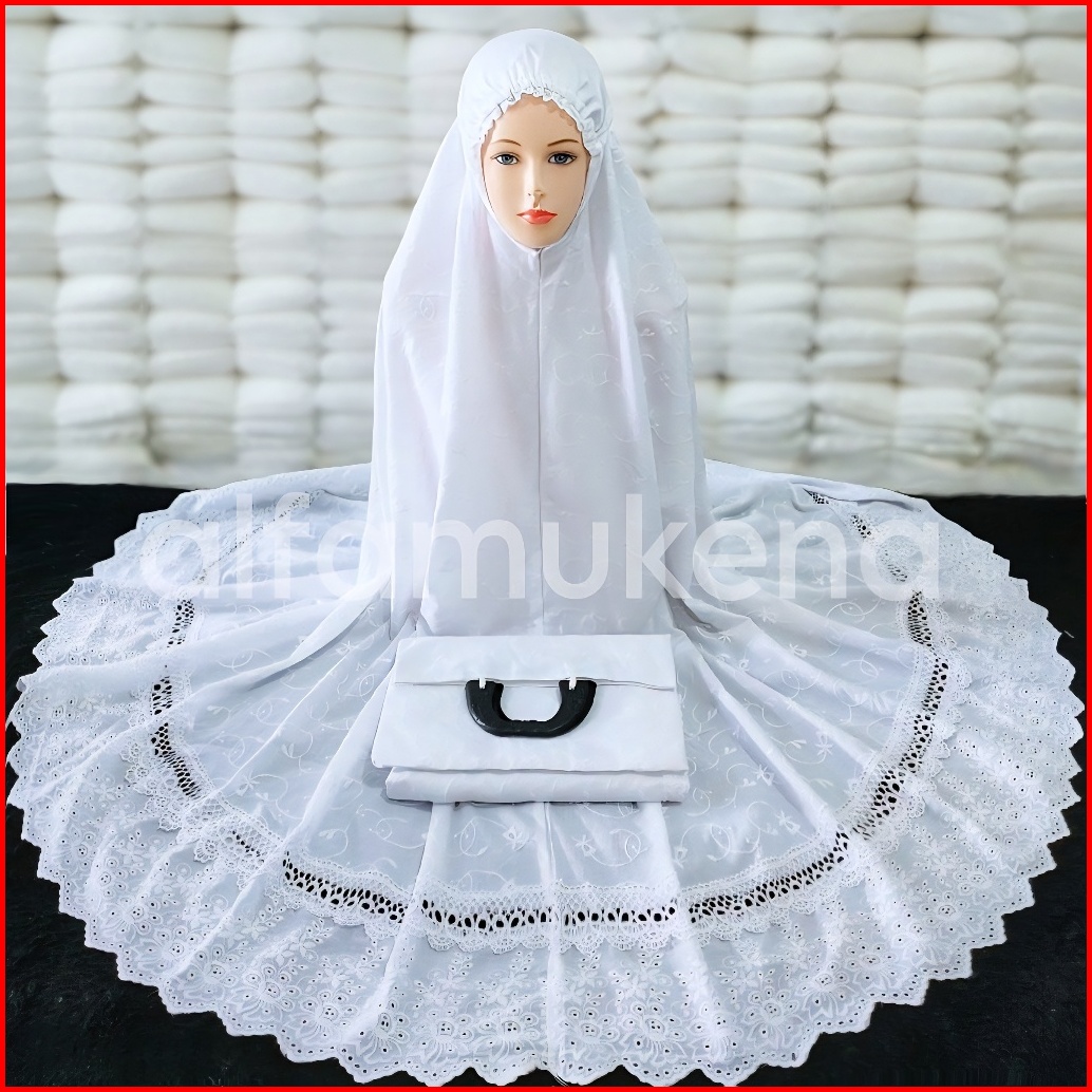 Mukena Dewasa Katun Paris Rempel Putih Milo Jumbo