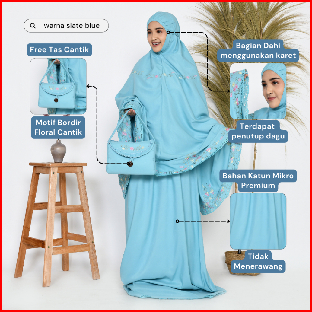 Nazihah Mukena Dewasa Telekung Raudah Tas Dan Mini Sajadah