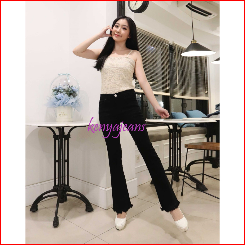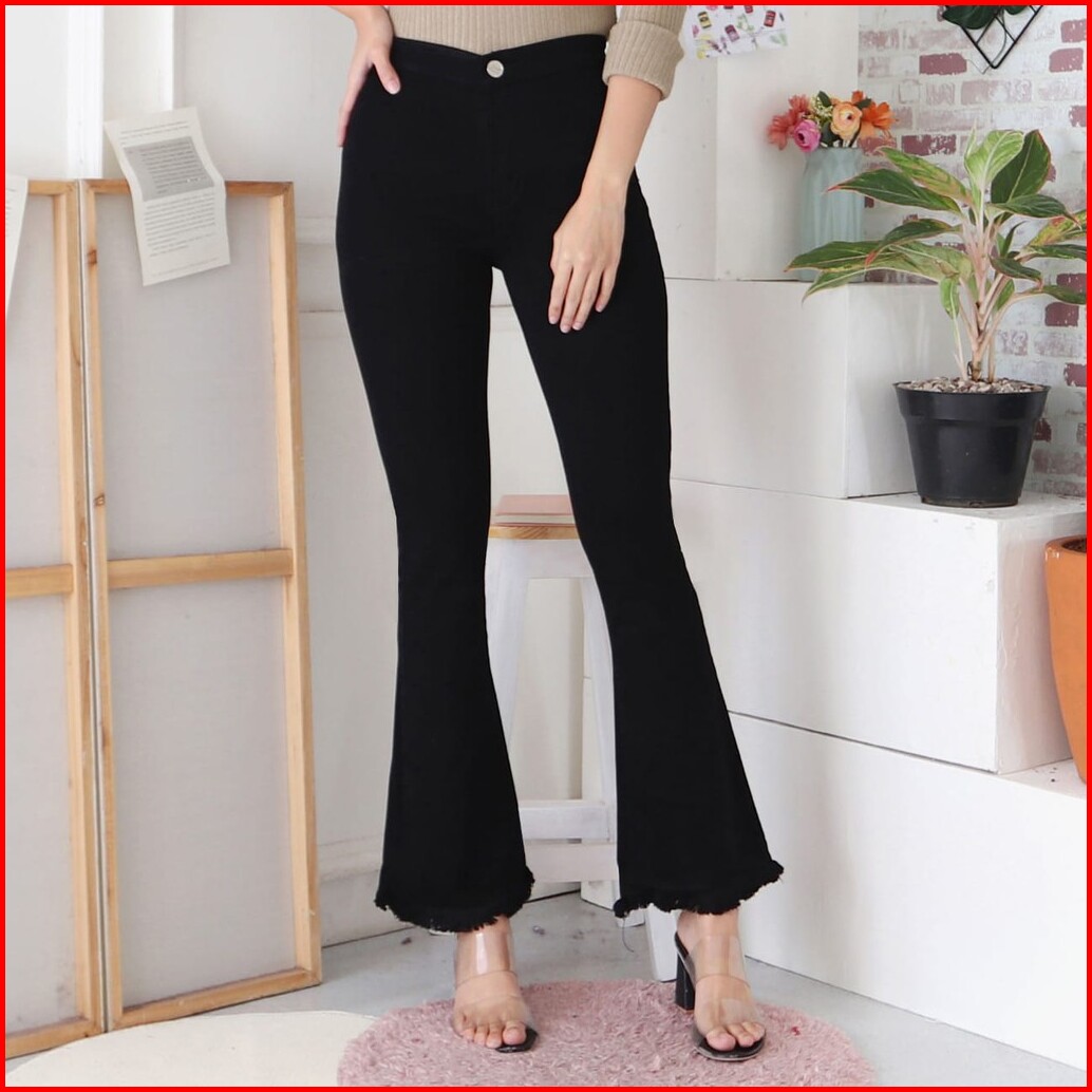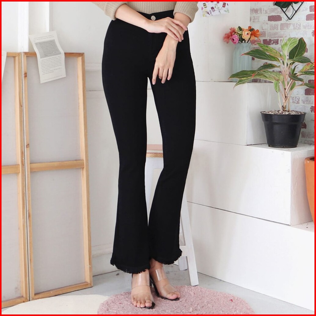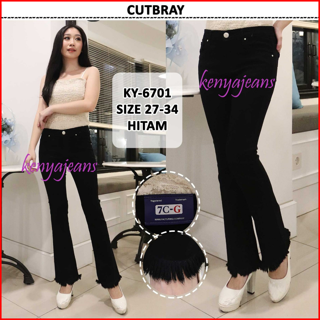 7c-g Celana Jeans Premium Highwaist Cutbray Hitam Highwaist Bootcut Streacht 27 - 34