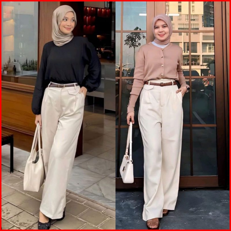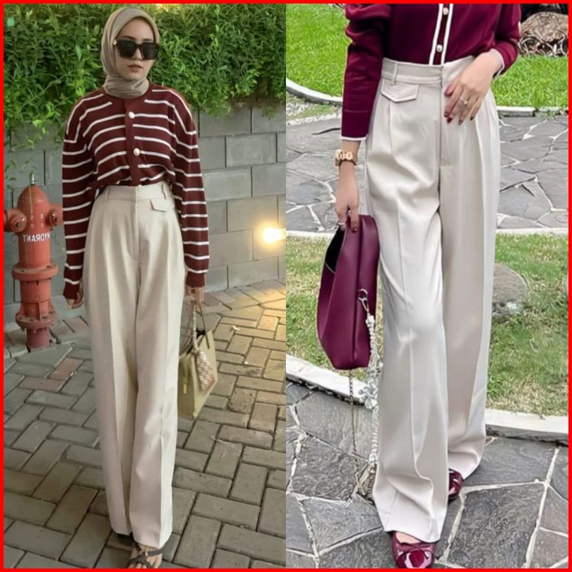 Oro Pants Semiwol Premium Qc Top Celana Basic Wanita Highwaist Loose Pants Trousers Kulot Anti Kusut