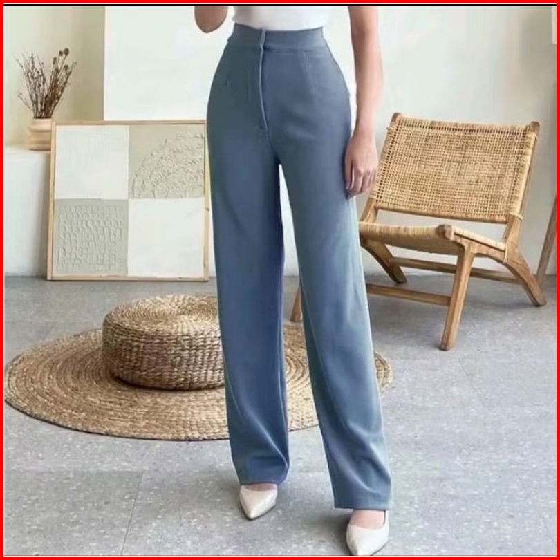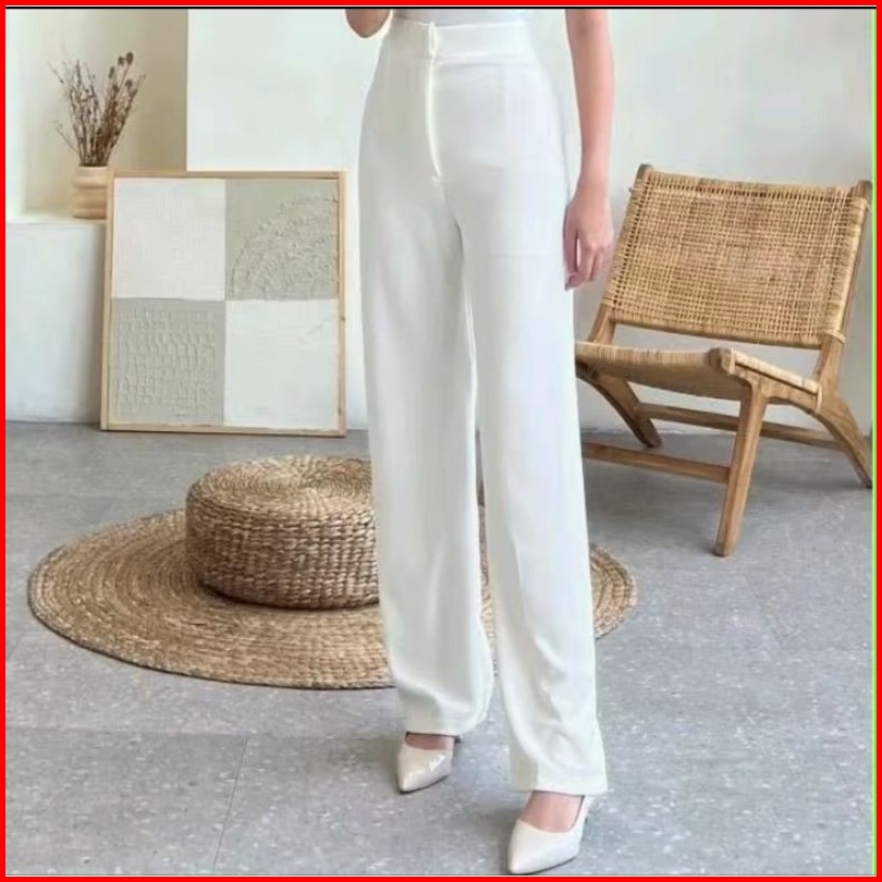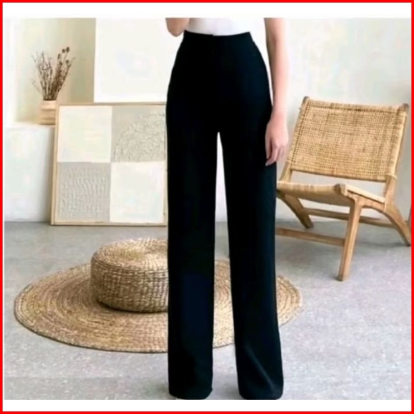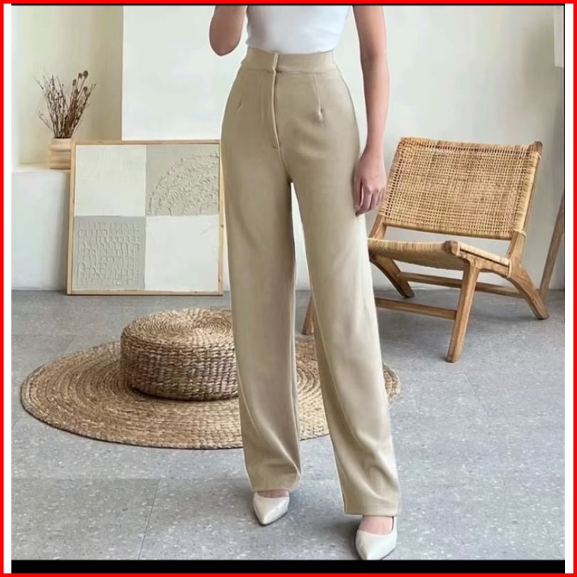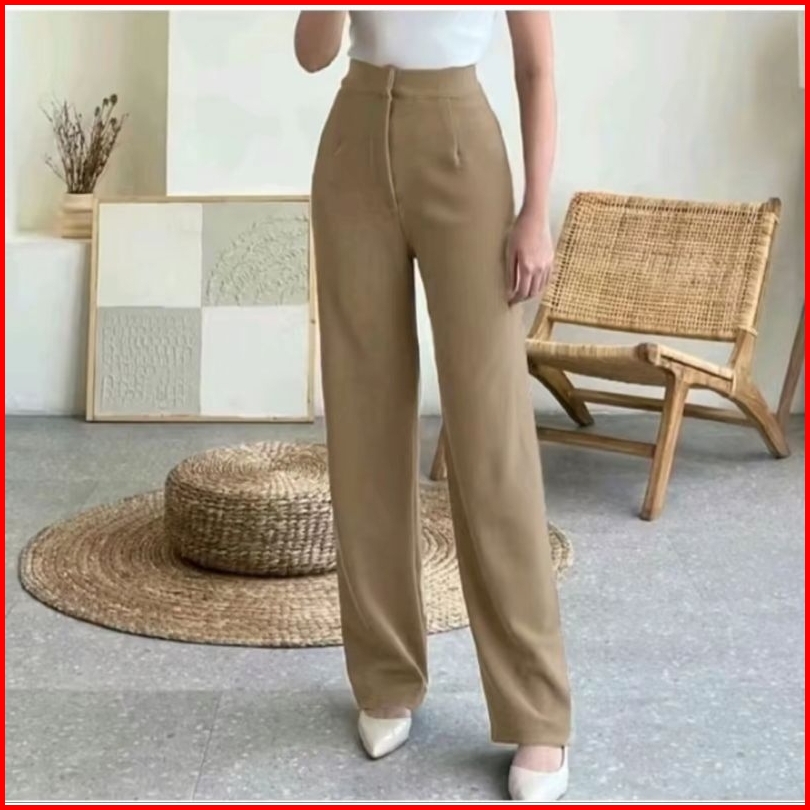 Cozie Pants Rib Knit Highwaist Cullote Celana Kulot Wanita Panjang Anti Kusut Outfit Casual Formal Untuk Kerja Kantor Ko