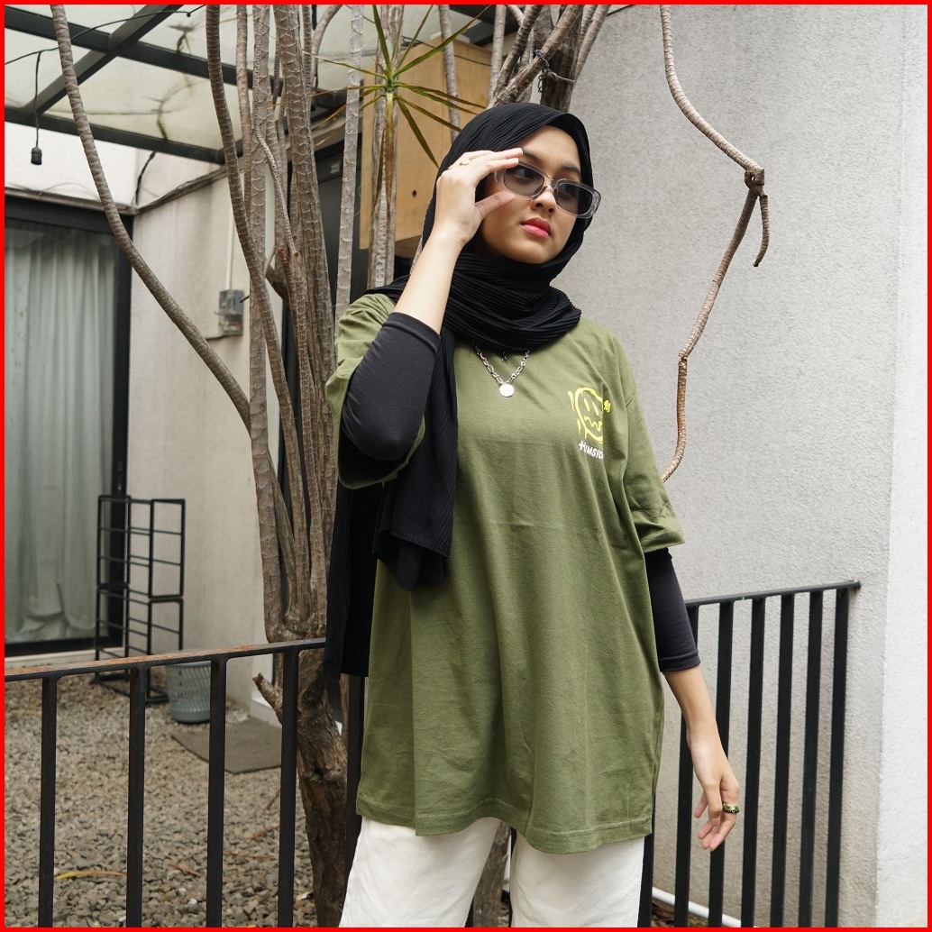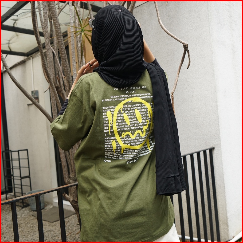 Himside - Katun Combed 30s - Emoticon Olive - Kaos Lengan Pendek Pria Dan Wanita