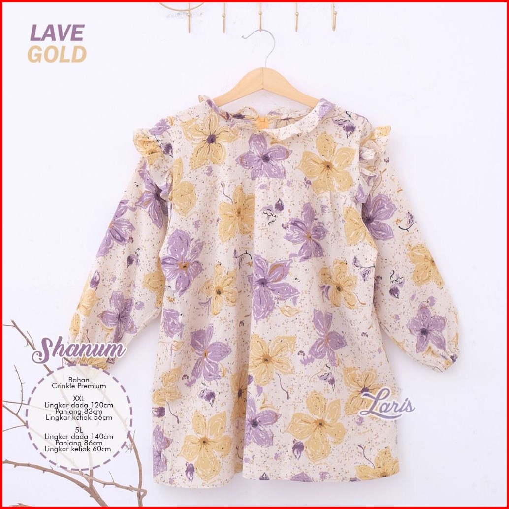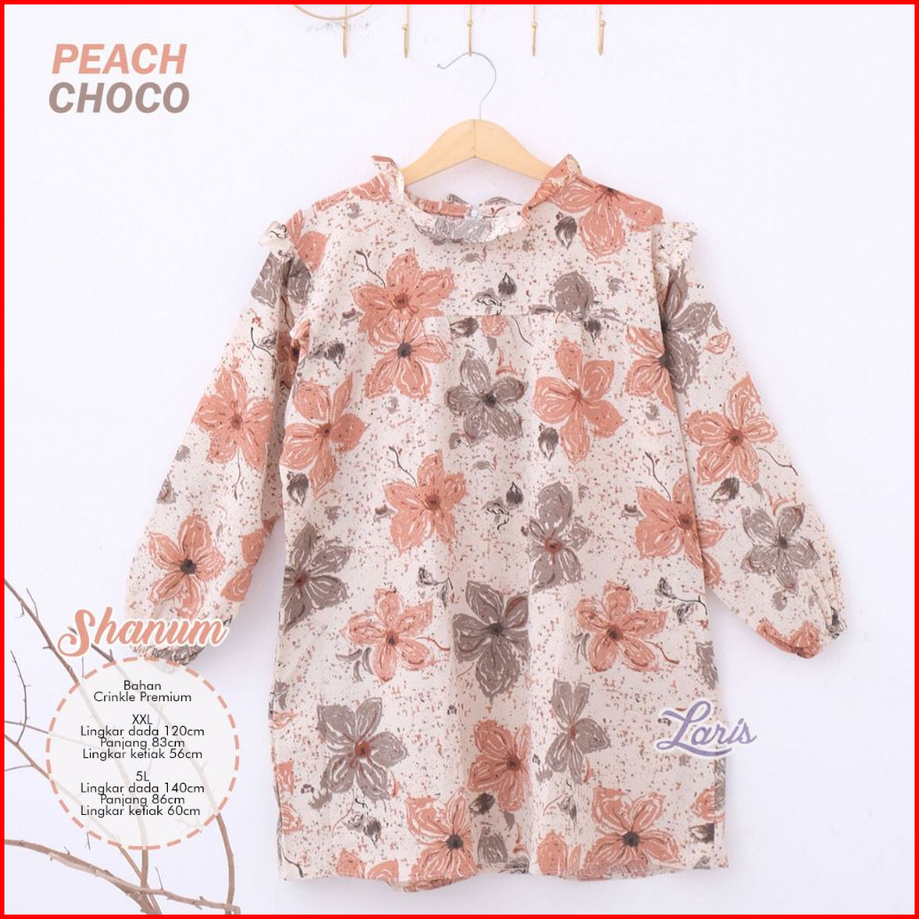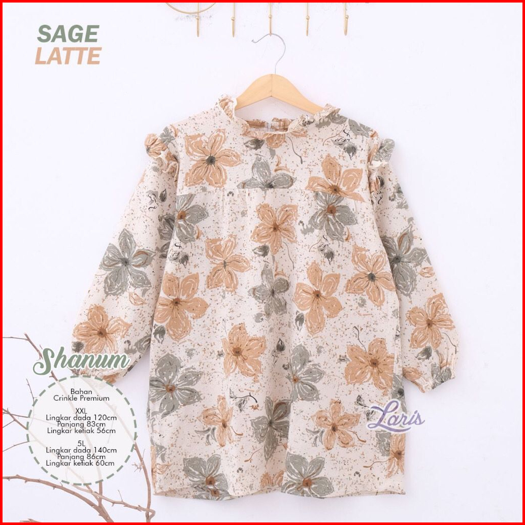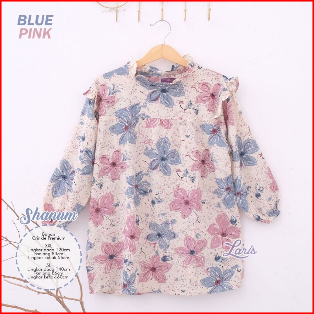 Blouse Shanum Wanita Crinkle Bunga Motif Bigsize Ld 120 140