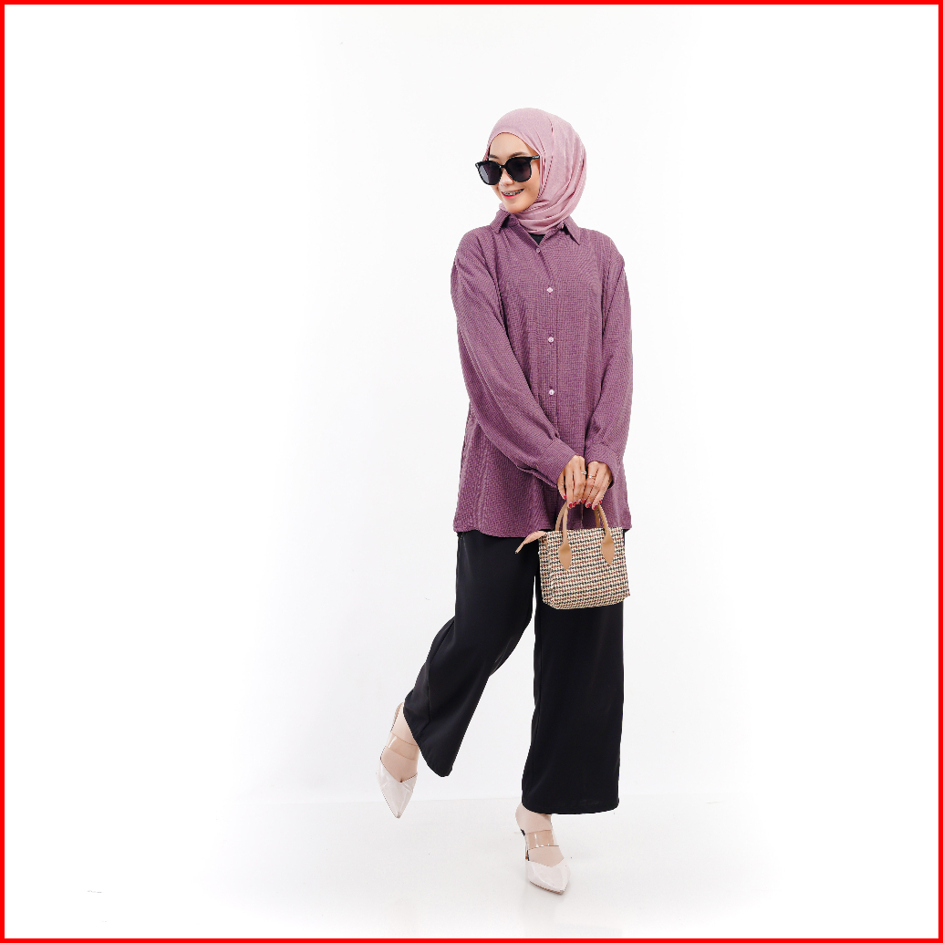 Kemeja Airflow Premium Jumbo Atasan Wanita Big Size Motif Kotak Outer Airflow Premium